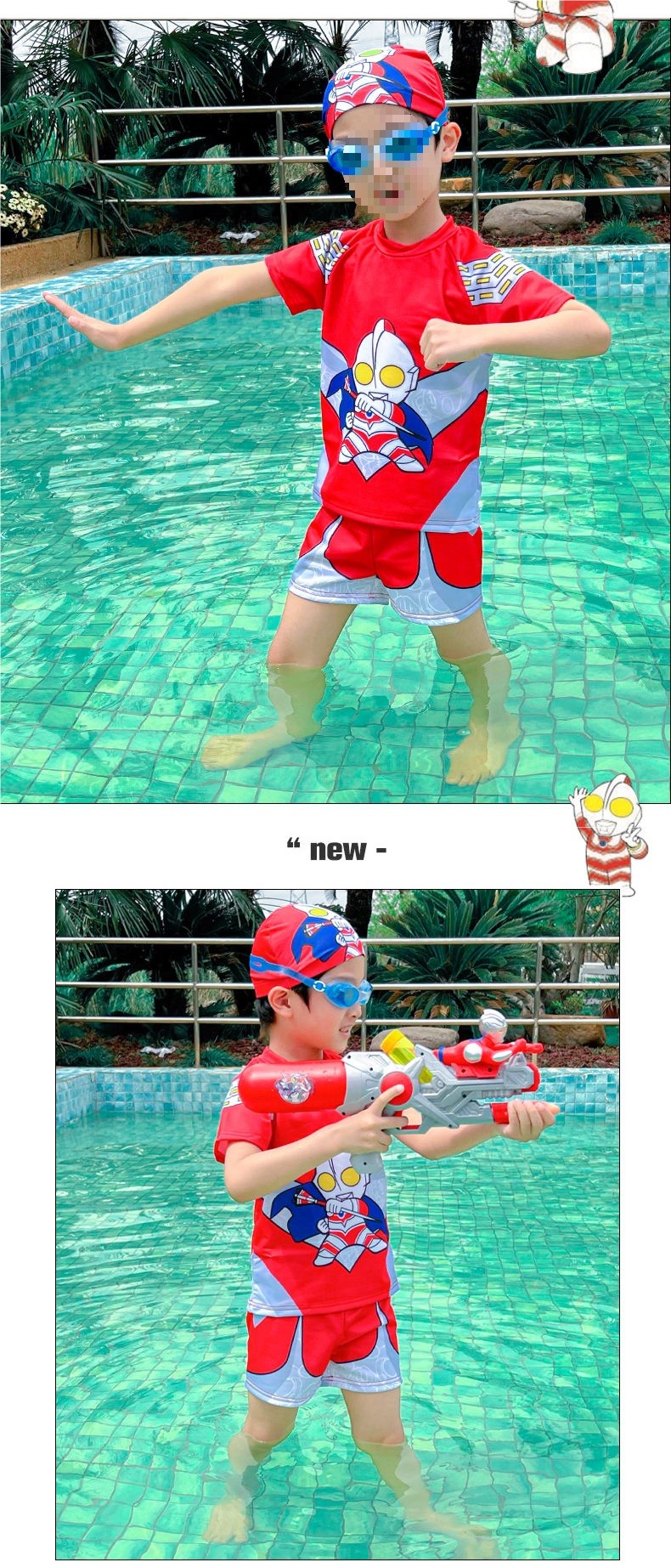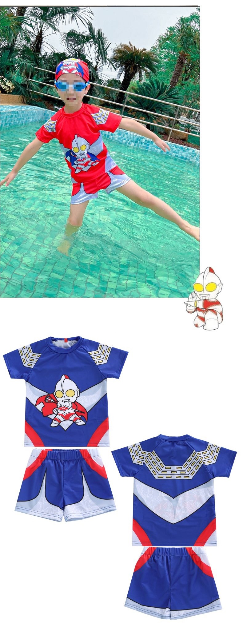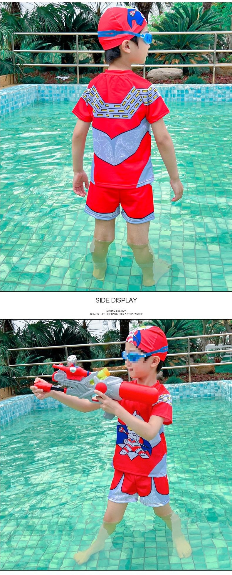 아동용 수영복, 남아용 스플릿 울트라맨 의류, 남아용 수영복, 속건성 자외선 차단 스파이더맨 온천 수영복스토어 가기