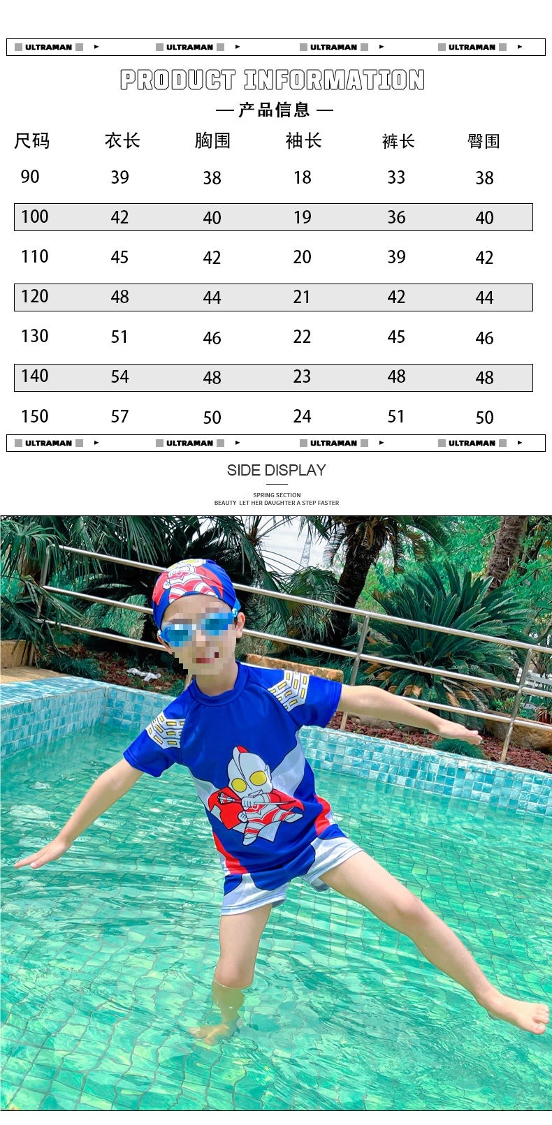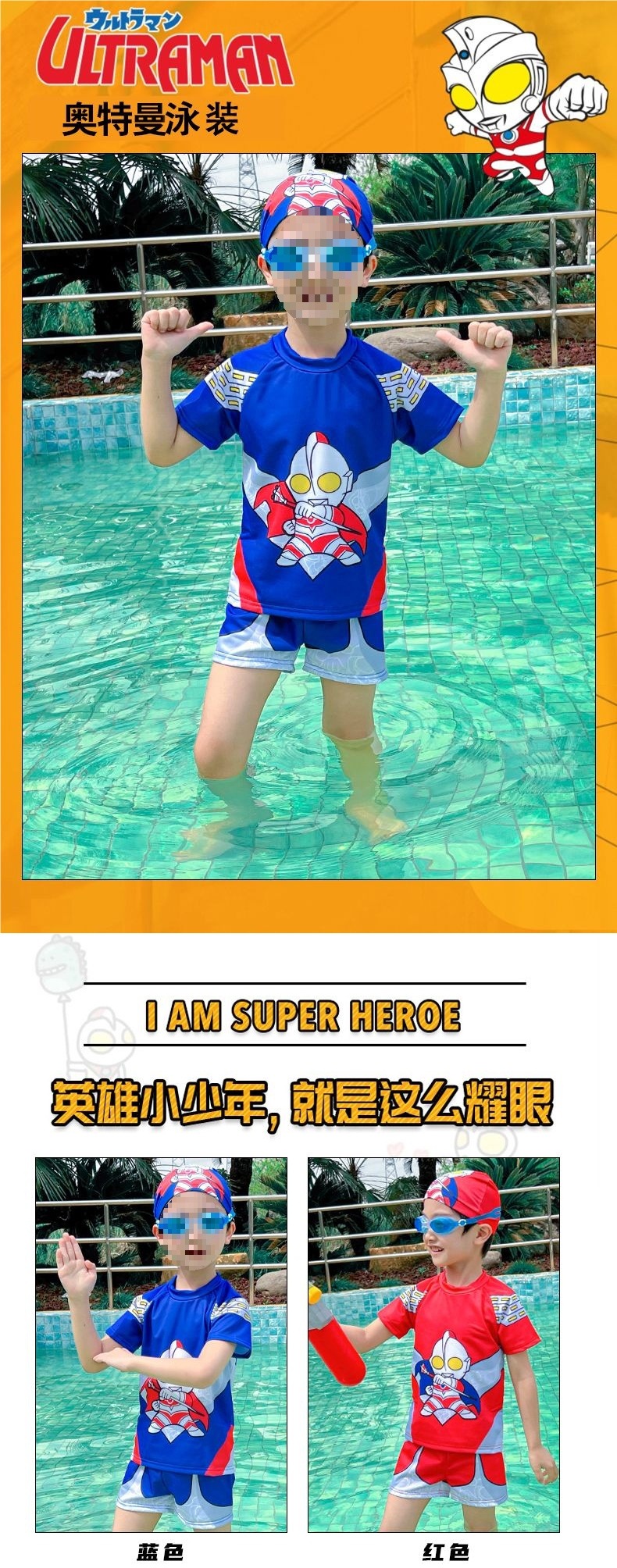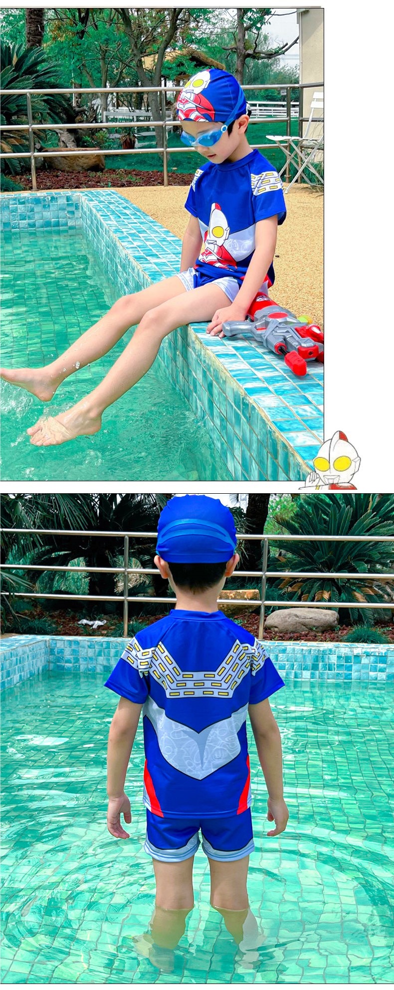 아동용 수영복, 남아용 스플릿 울트라맨 의류, 남아용 수영복, 속건성 자외선 차단 스파이더맨 온천 수영복스토어 가기