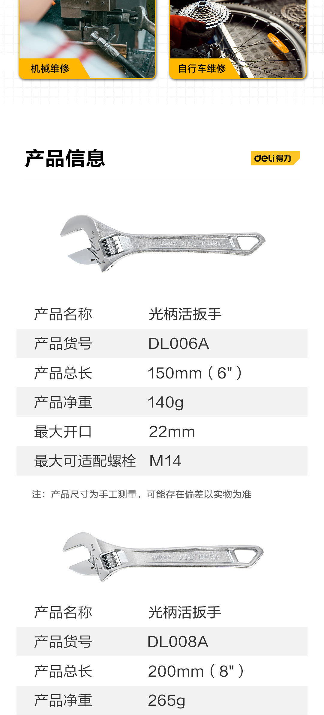 델리 조절식 렌치, 빛나는 손잡이, 조절식 렌치, 다기능 조절식 렌치, 레이저 스케일 보드 DL006A스토어 가기