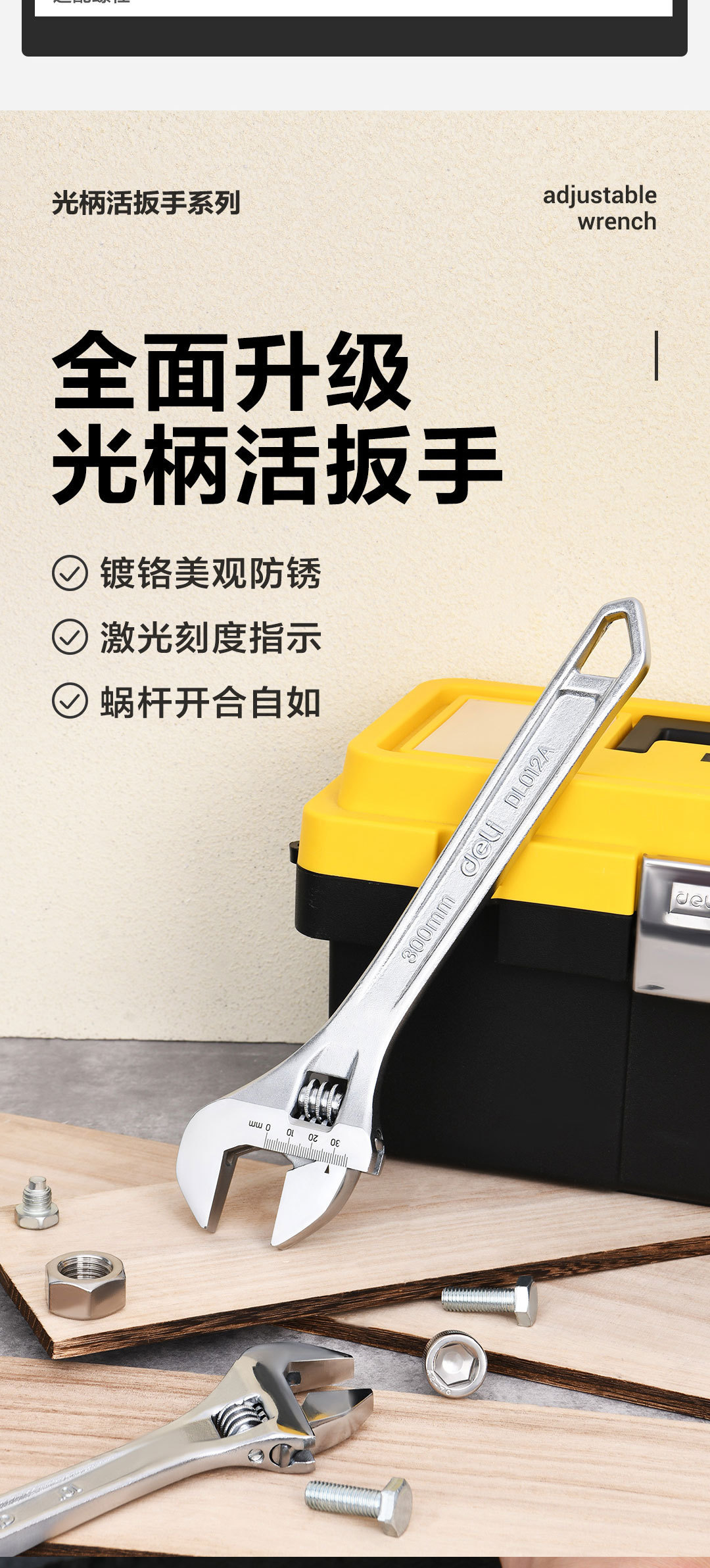델리 조절식 렌치, 빛나는 손잡이, 조절식 렌치, 다기능 조절식 렌치, 레이저 스케일 보드 DL006A