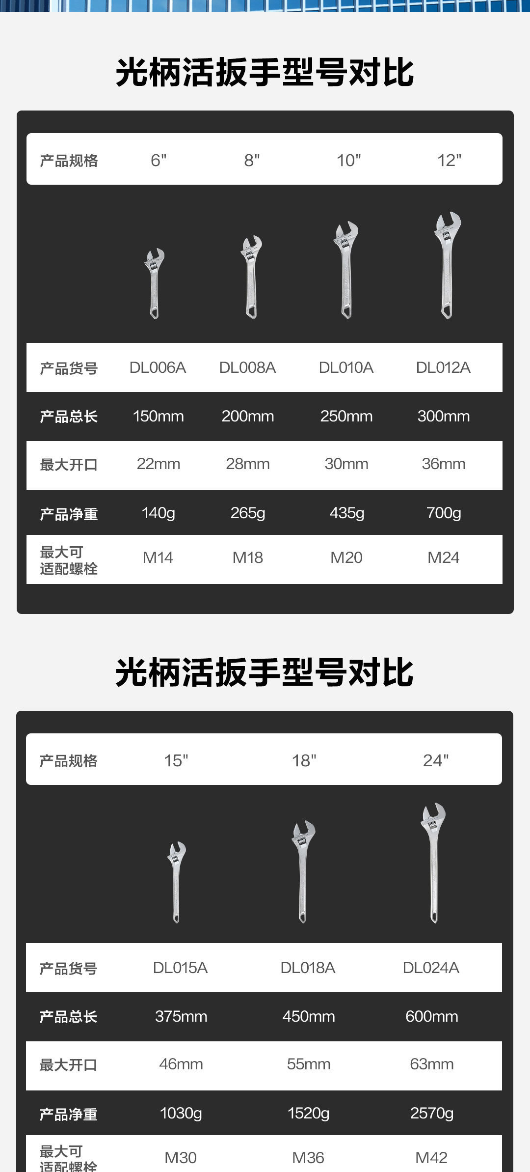 • DL008A 부드러운 핸들 조절 렌치 8inch