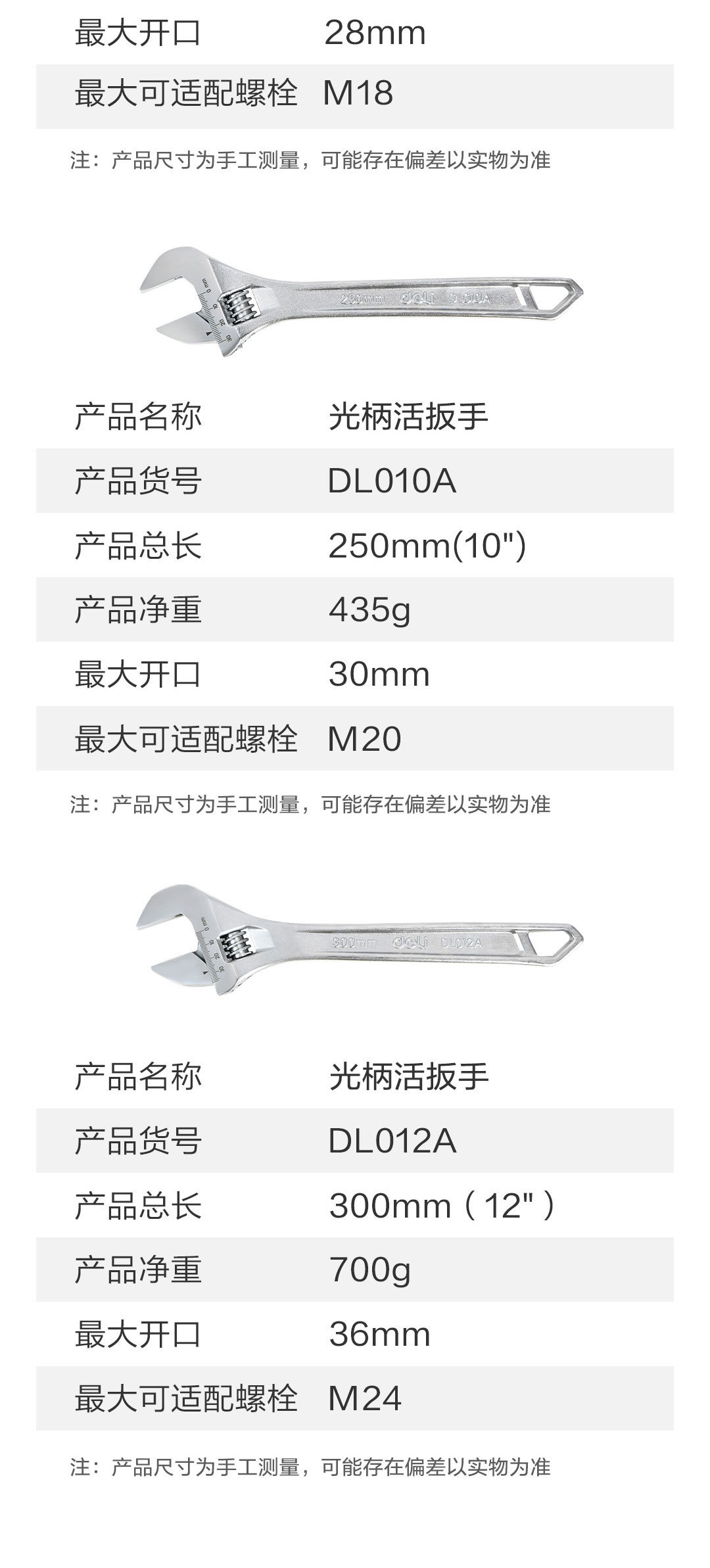 • DL012A 부드러운 핸들 조절식 렌치 12inch