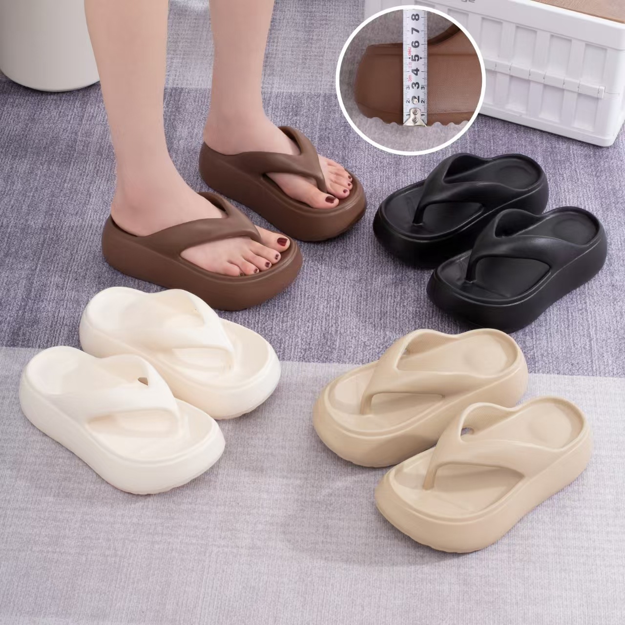 여름철 여성이 입기 좋은 두꺼운 밑창 슬리퍼, 2025년 신형 미끄럼 방지 해변 비치 슈즈, 하이힐 슬리퍼스토어 가기