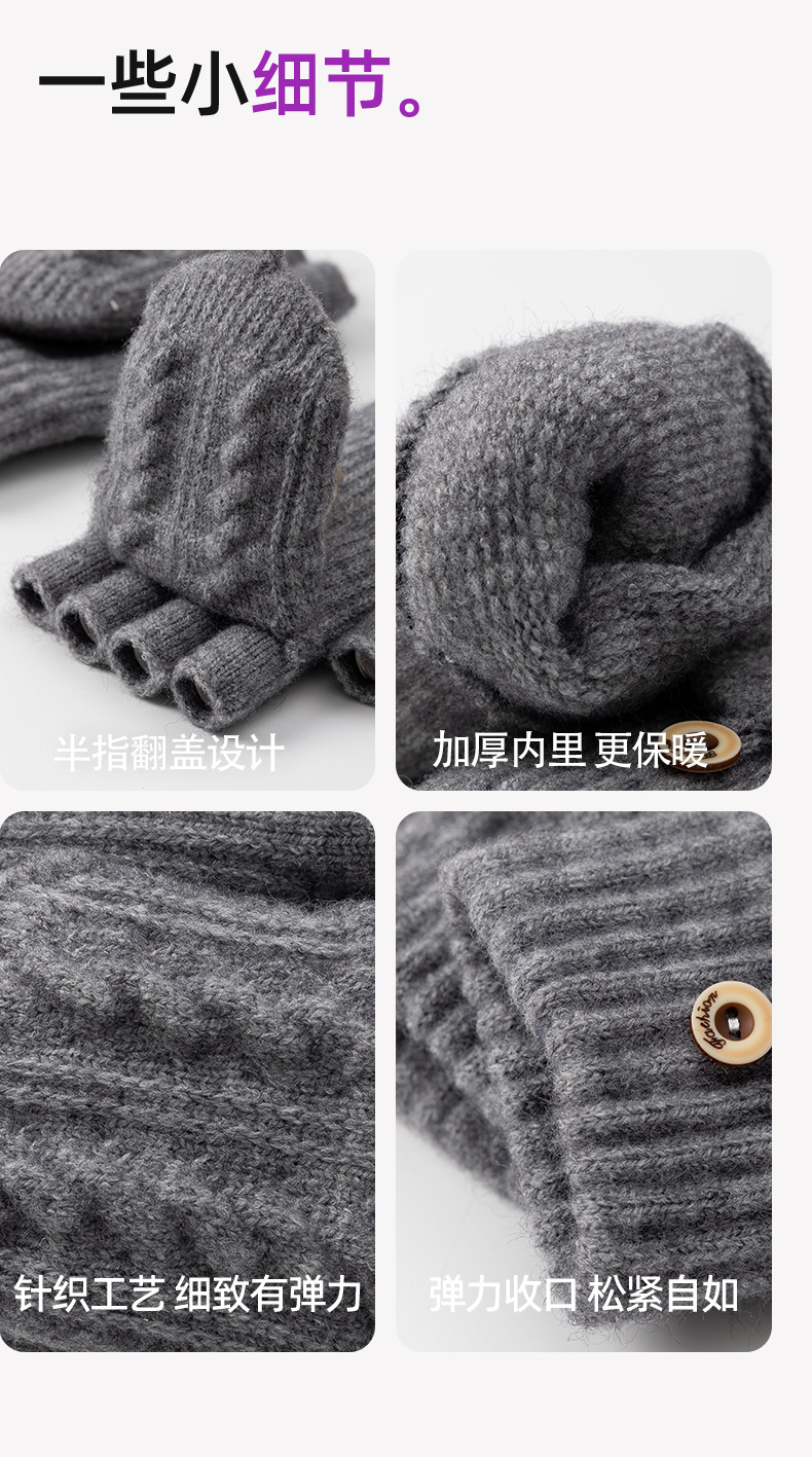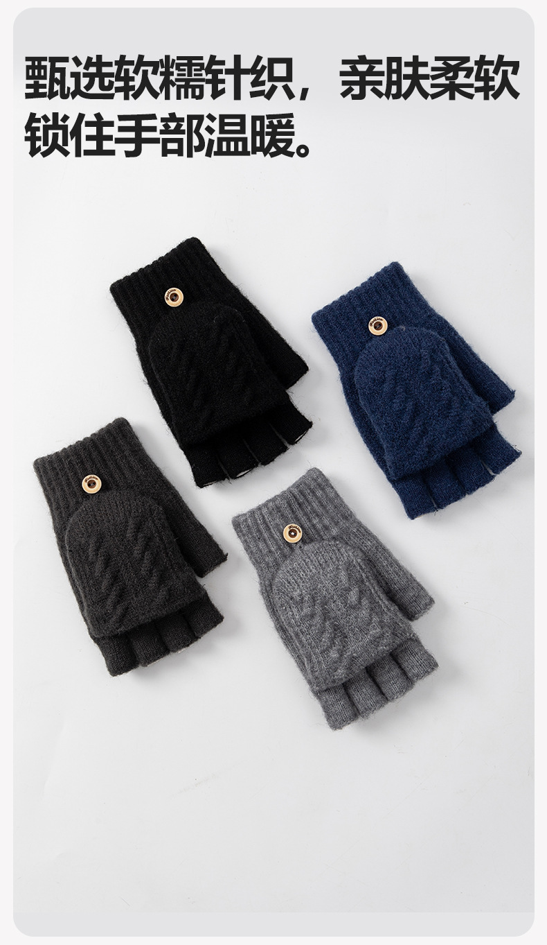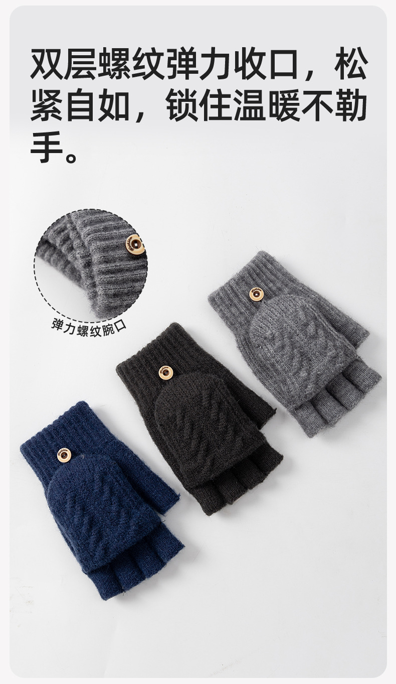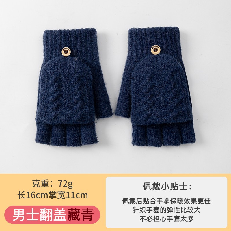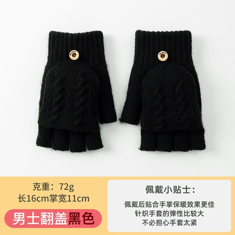 남성용 반장갑 겨울용 자전거 타기 게임용 글쓰기용 방한 플립커버 터치스크린 니트 손가락 노출 장갑 도매스토어 가기