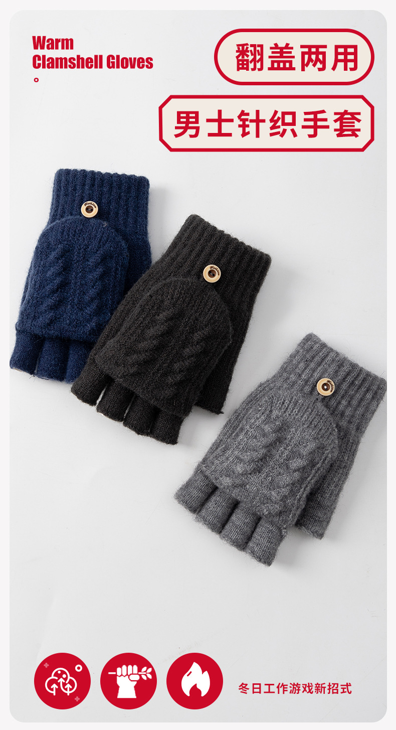 남성용 반장갑 겨울용 자전거 타기 게임용 글쓰기용 방한 플립커버 터치스크린 니트 손가락 노출 장갑 도매