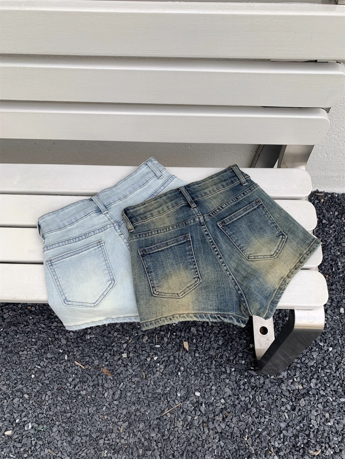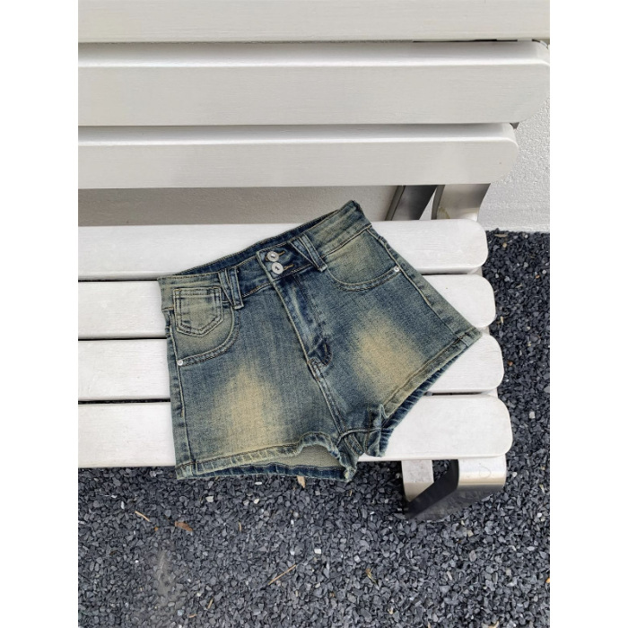 여름 여성을 위한 아메리칸 레트로 데님 반바지 새로운 스타일 더블 버튼 디자인 하이 웨이스트 슬림 타이트 다용도 힙 커버 핫팬츠스토어 가기
