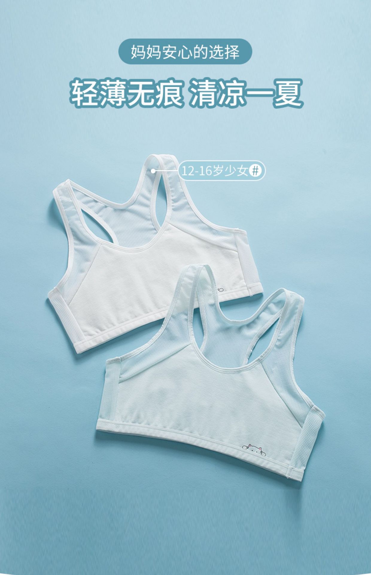 아동 속옷, 여아 성장 및 발달 기간 9-12세, 소형 조끼, 여아 초중등 학생, 얇은 이너웨어 브라