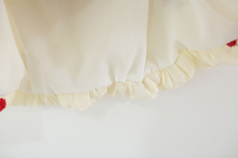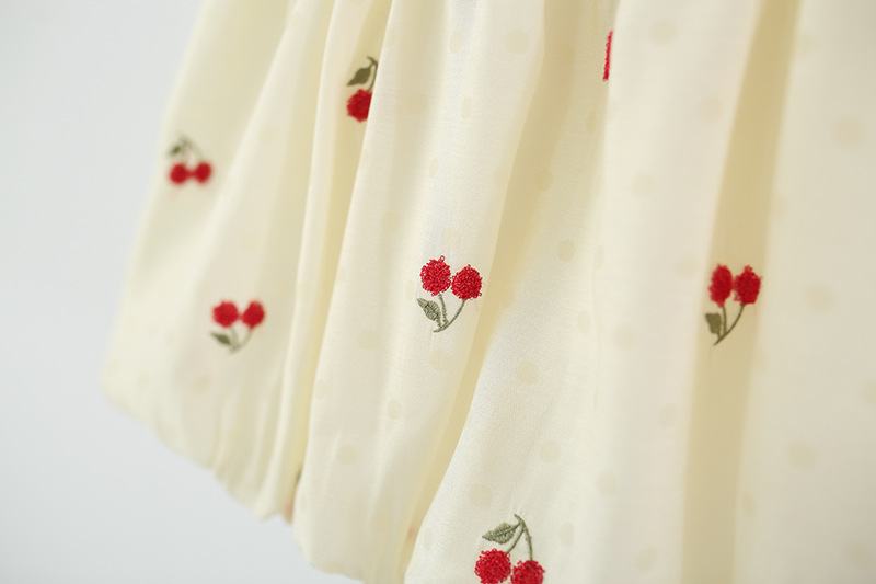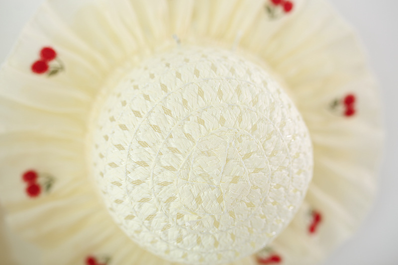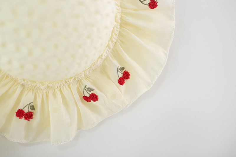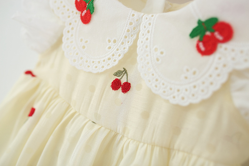 2025 여름 새로운 레이스 체리 칼라 원피스 소녀 한국 레이스 플라잉 슬리브 스커트 밀짚 모자스토어 가기