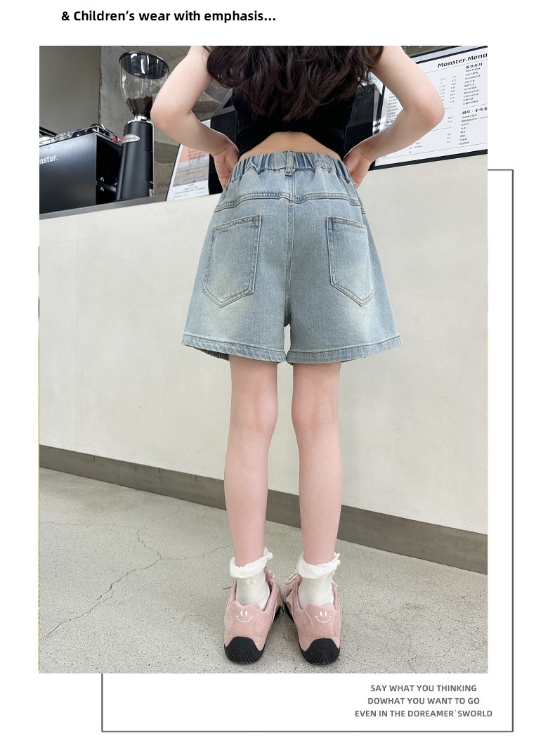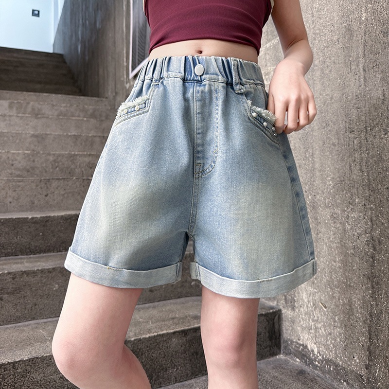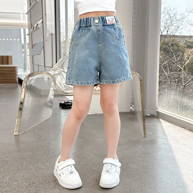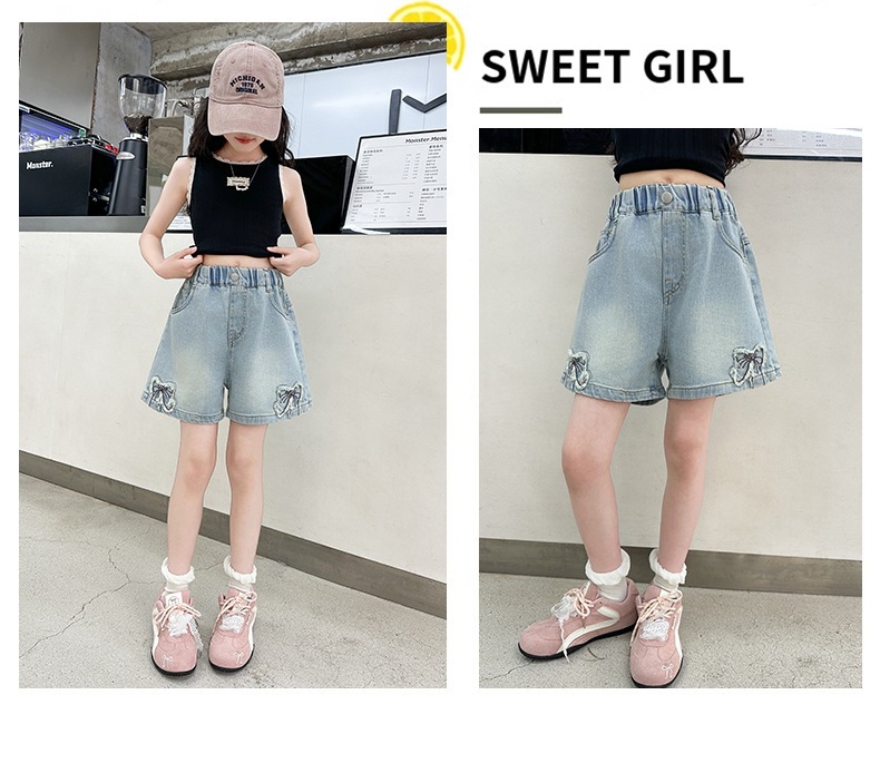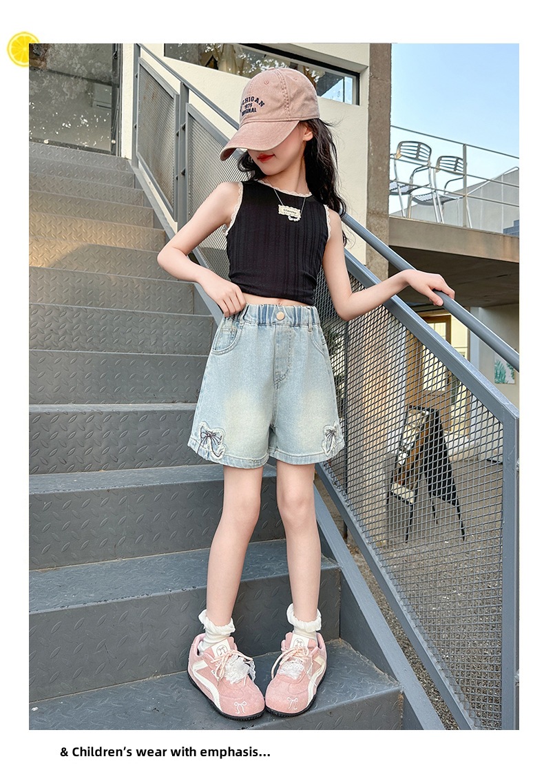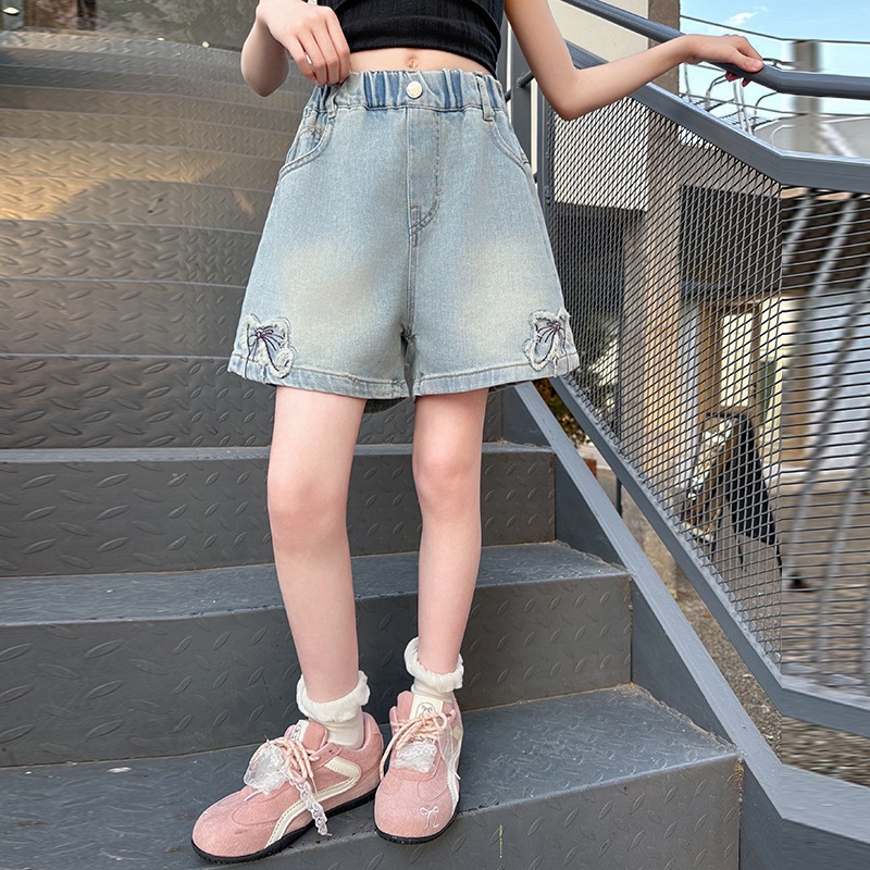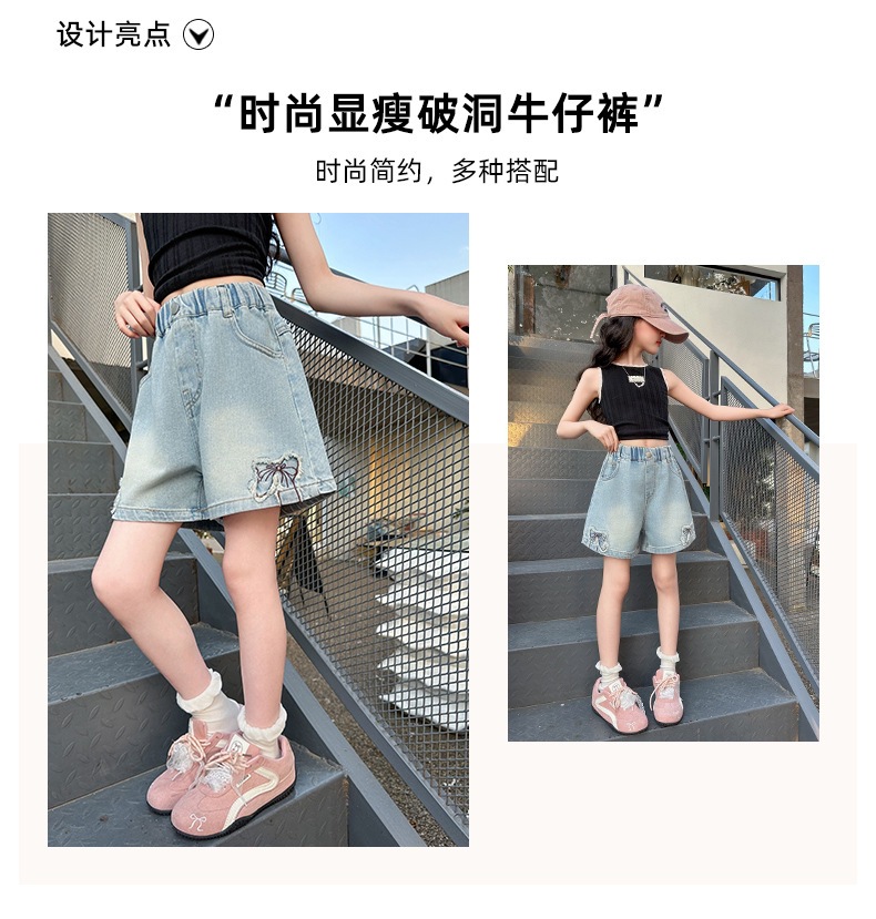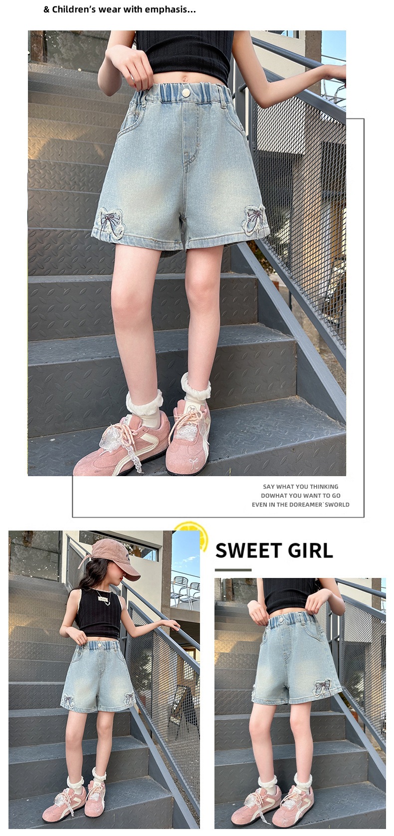 2025 여름 여아 데님 반바지, 중대형 아동 여름 옷, 신형 여아 반바지, 아동 아우터 얇은 바지, 트렌디스토어 가기