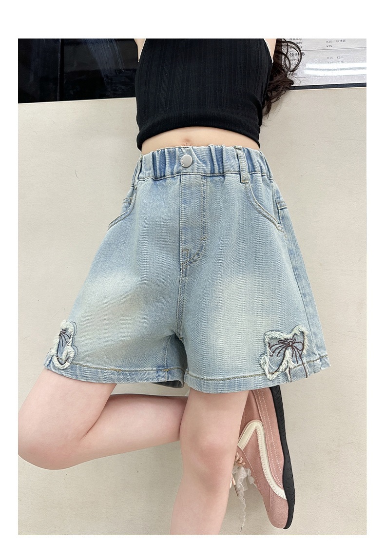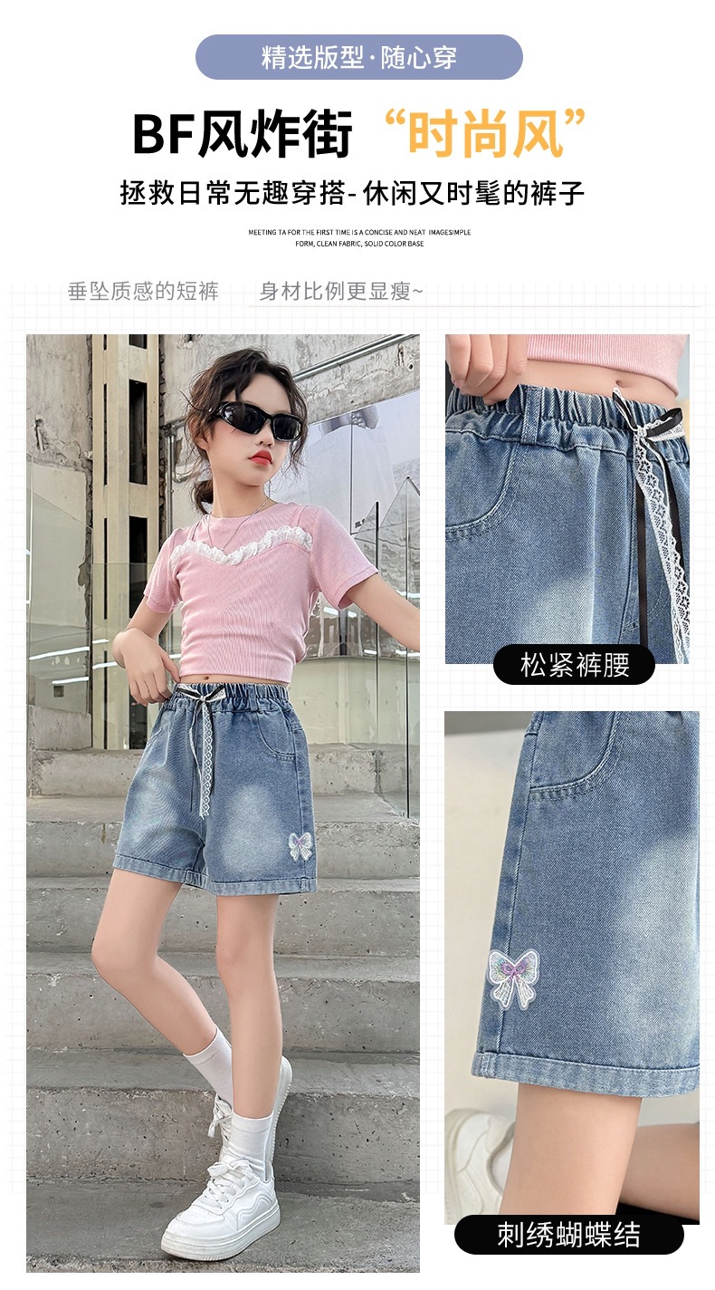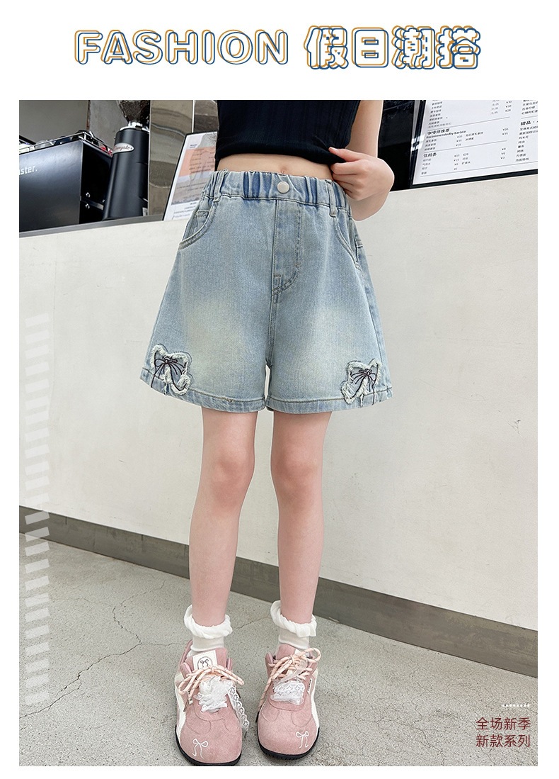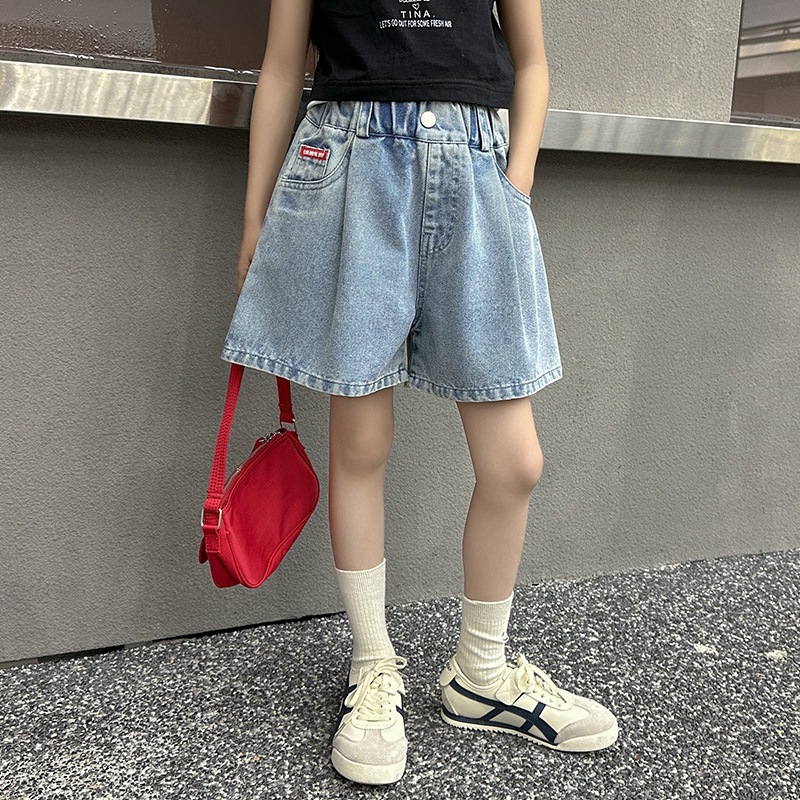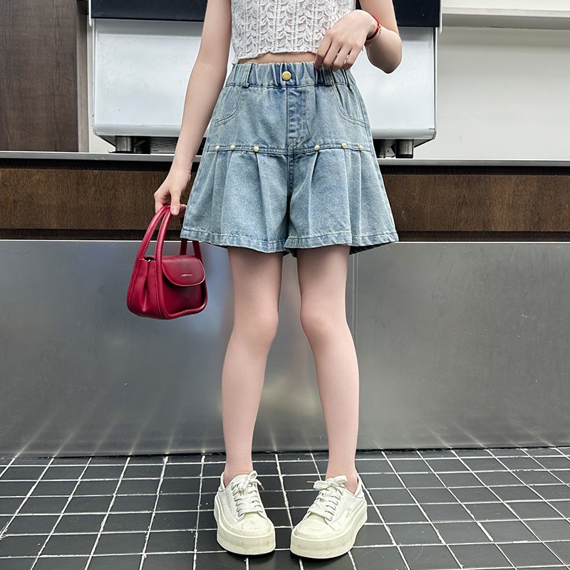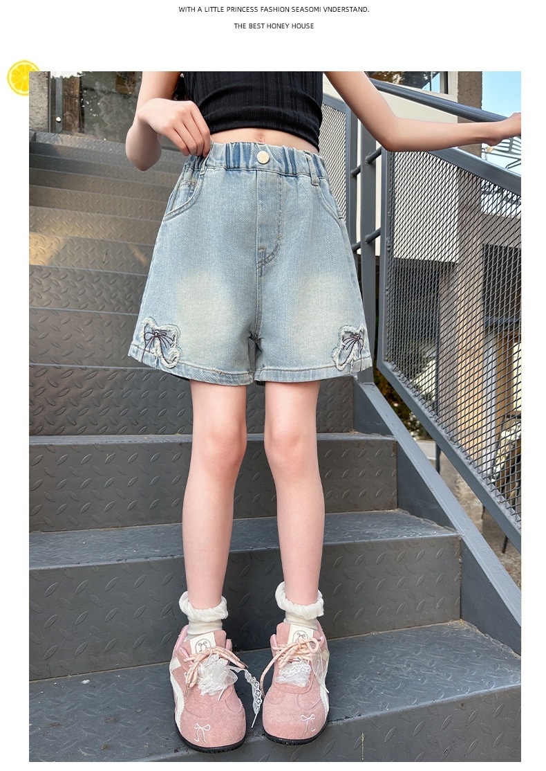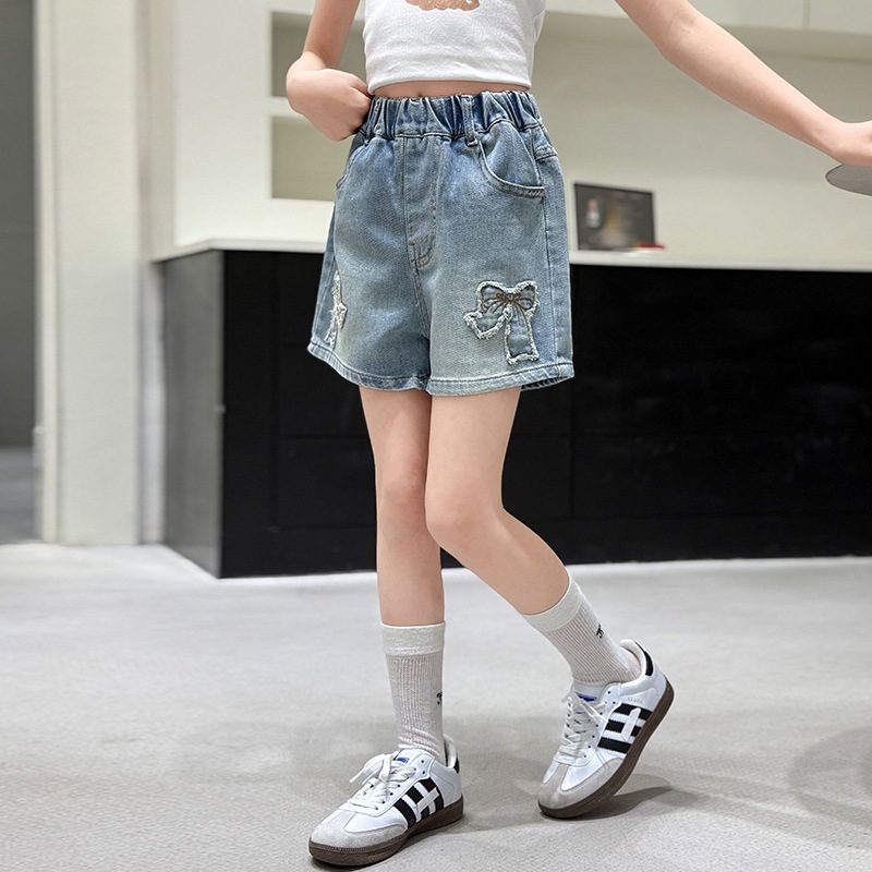2025 여름 여아 데님 반바지, 중대형 아동 여름 옷, 신형 여아 반바지, 아동 아우터 얇은 바지, 트렌디스토어 가기