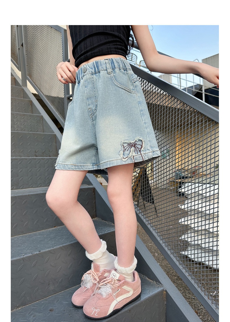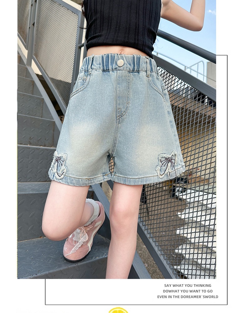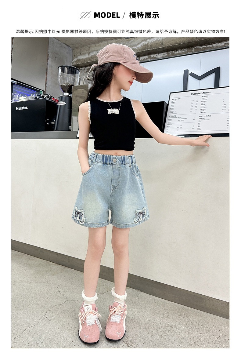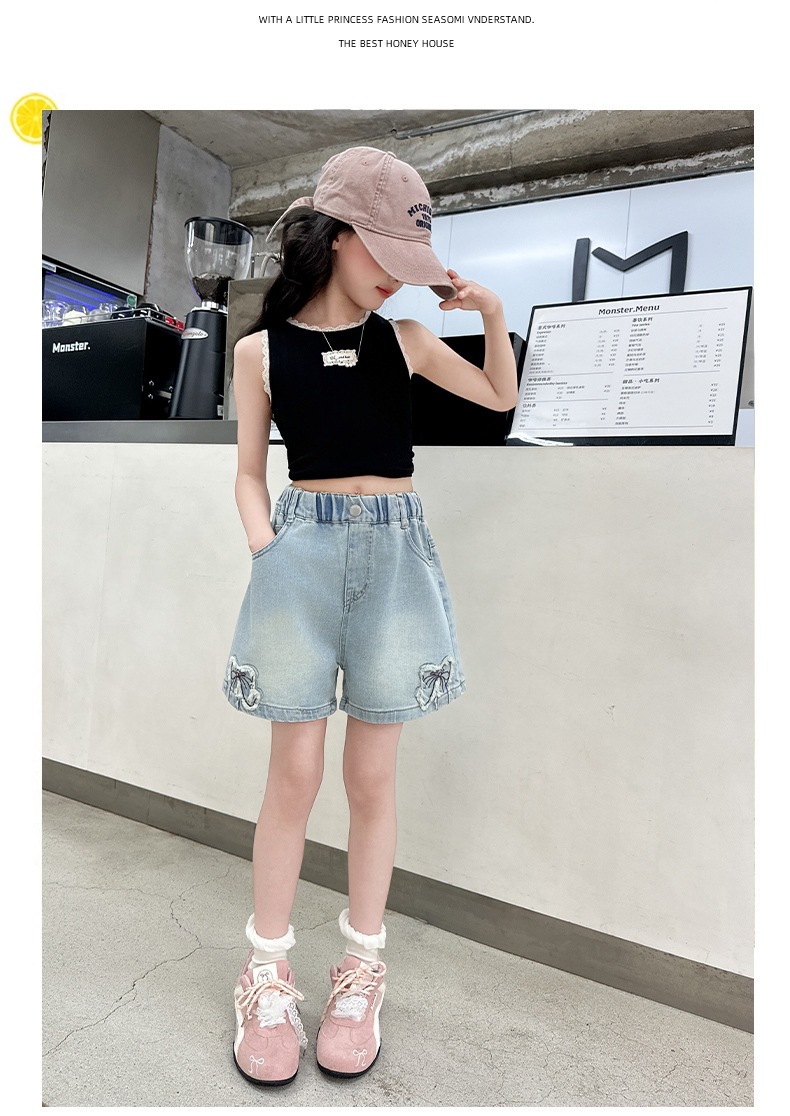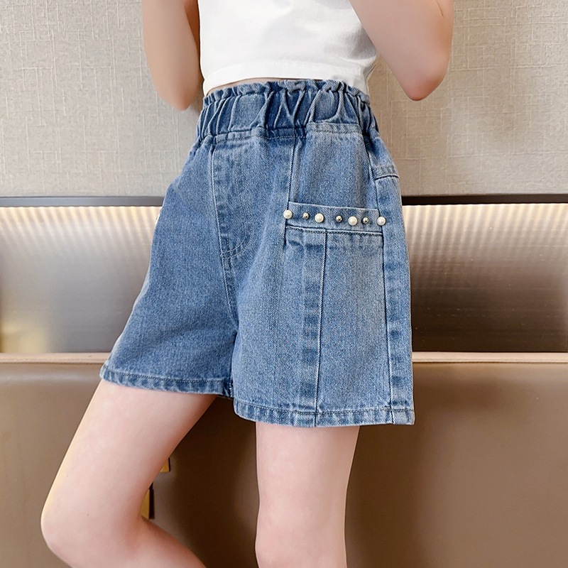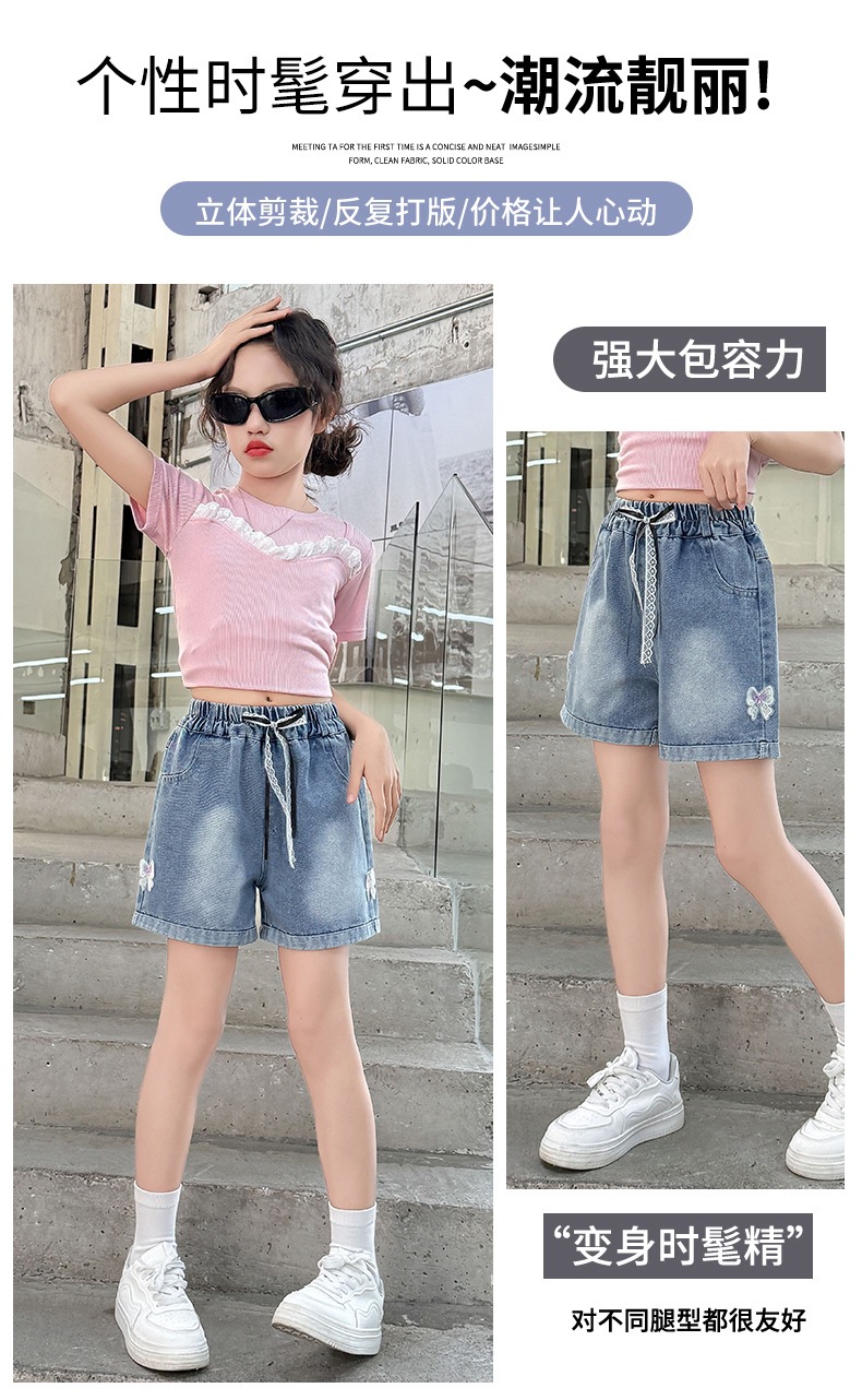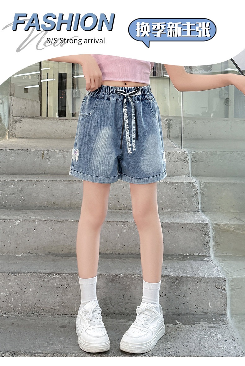 2025 여름 여아 데님 반바지, 중대형 아동 여름 옷, 신형 여아 반바지, 아동 아우터 얇은 바지, 트렌디스토어 가기