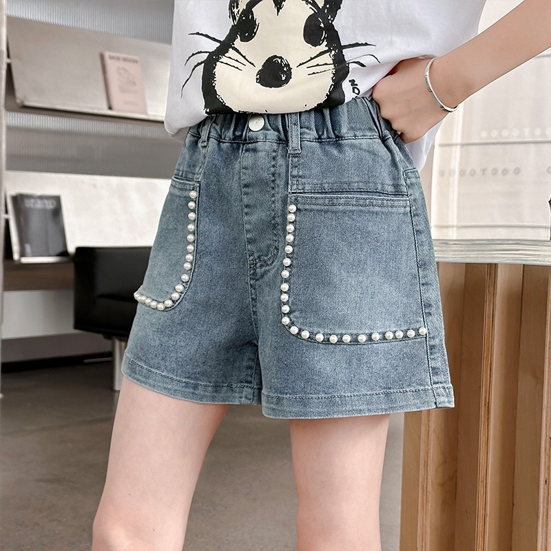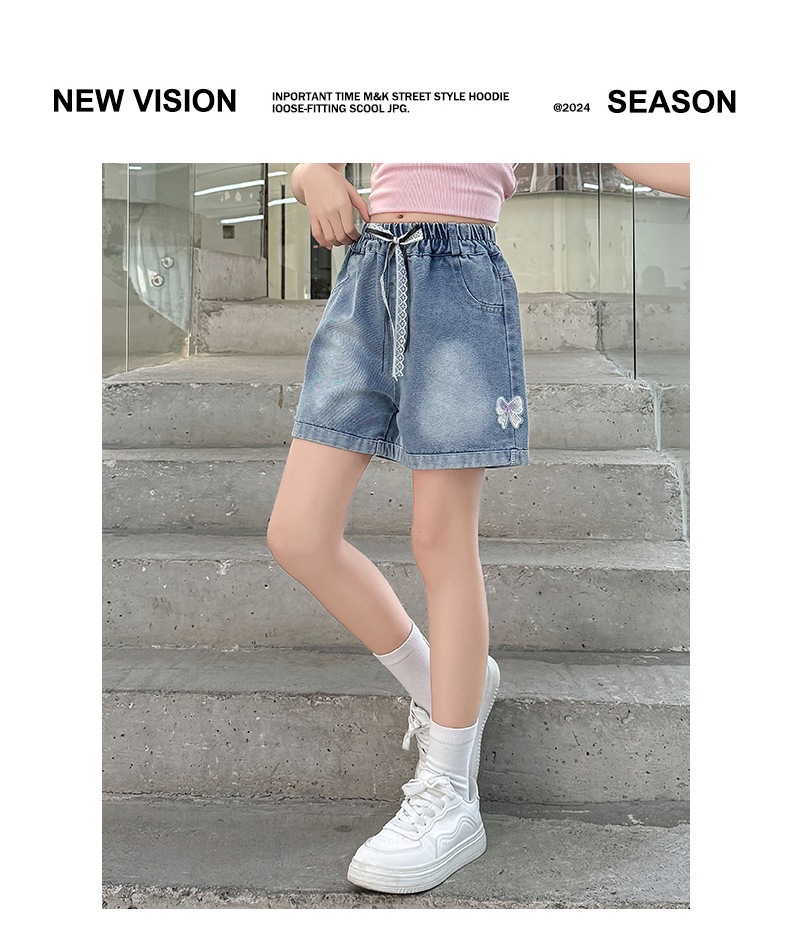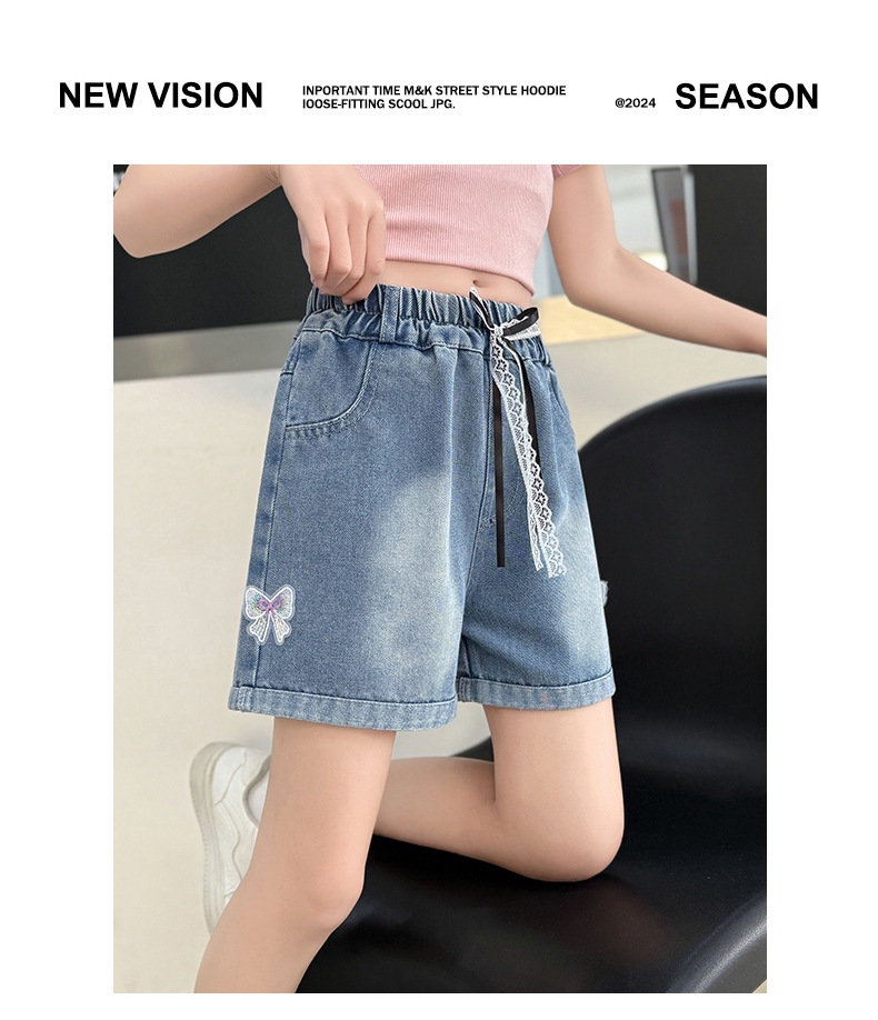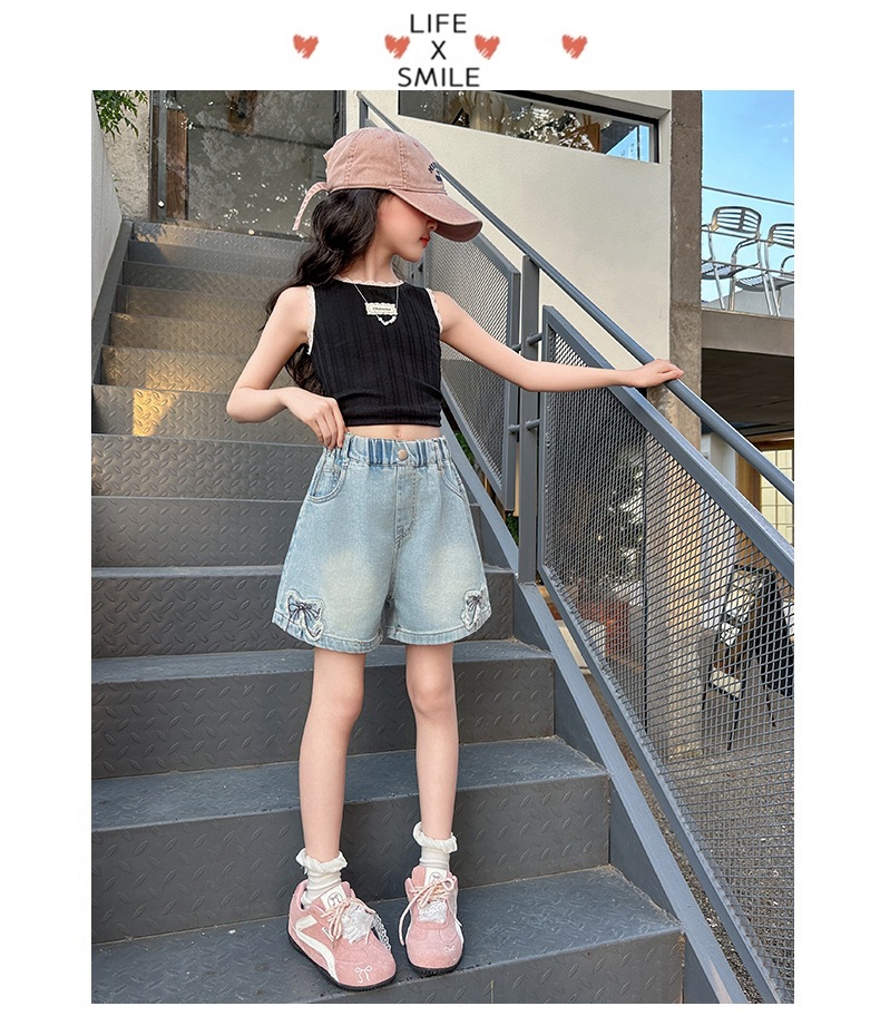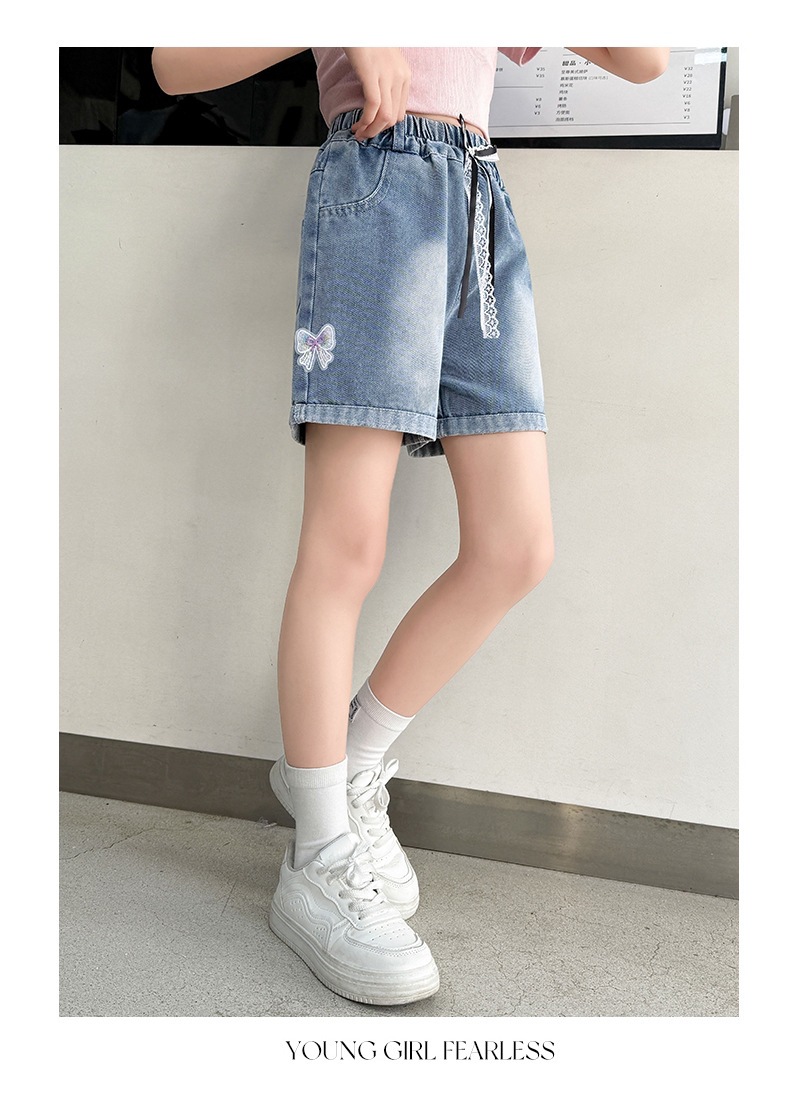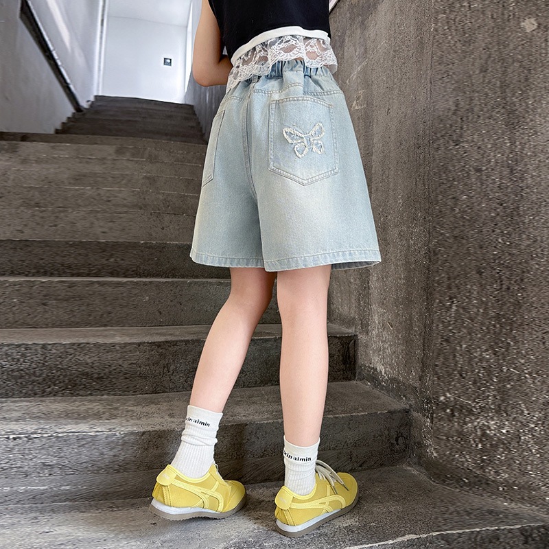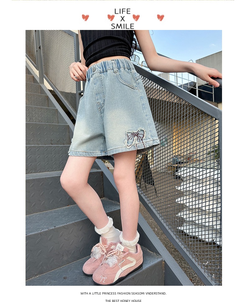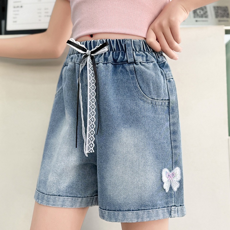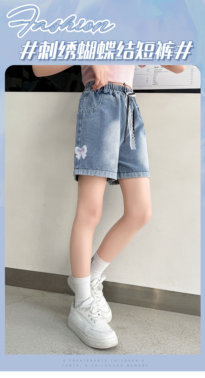 2025 여름 여아 데님 반바지, 중대형 아동 여름 옷, 신형 여아 반바지, 아동 아우터 얇은 바지, 트렌디스토어 가기