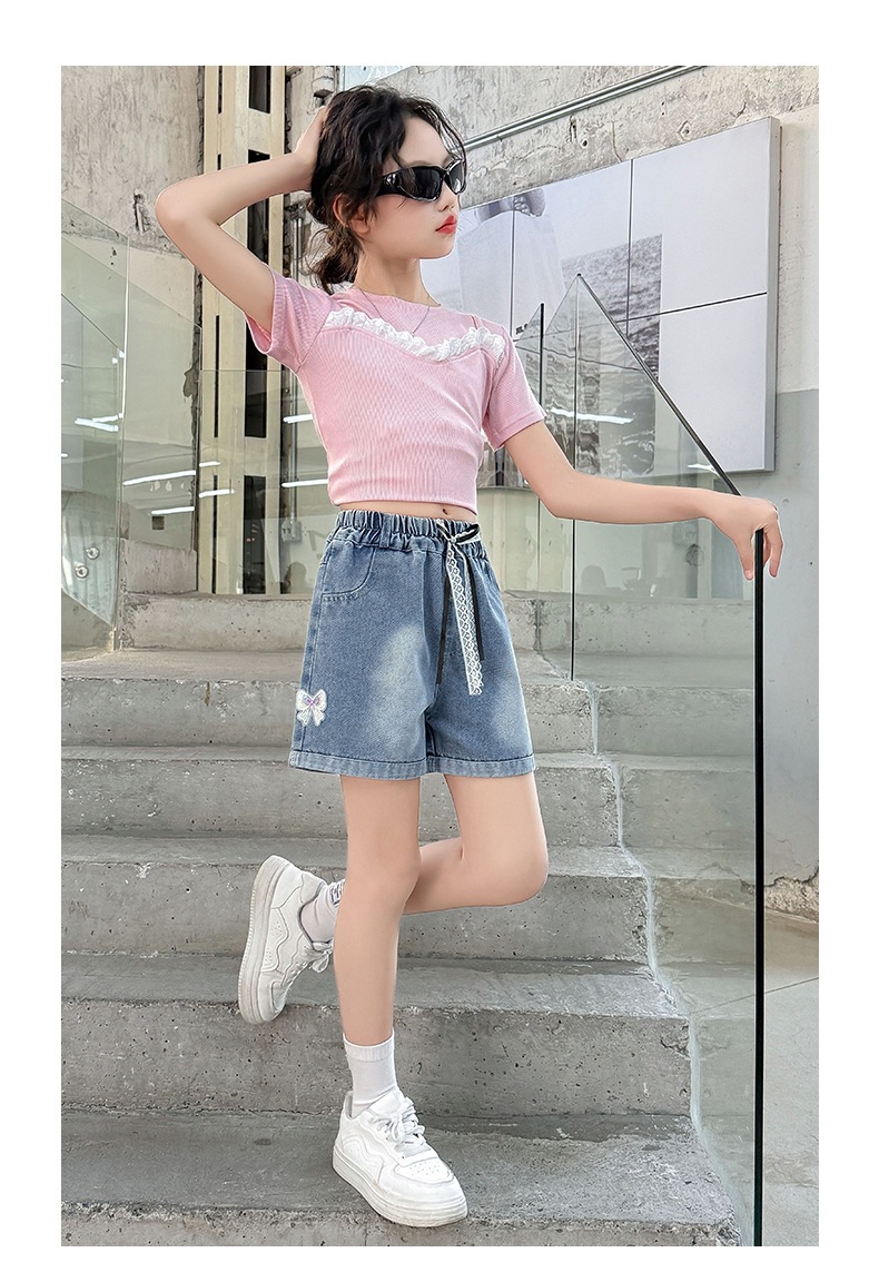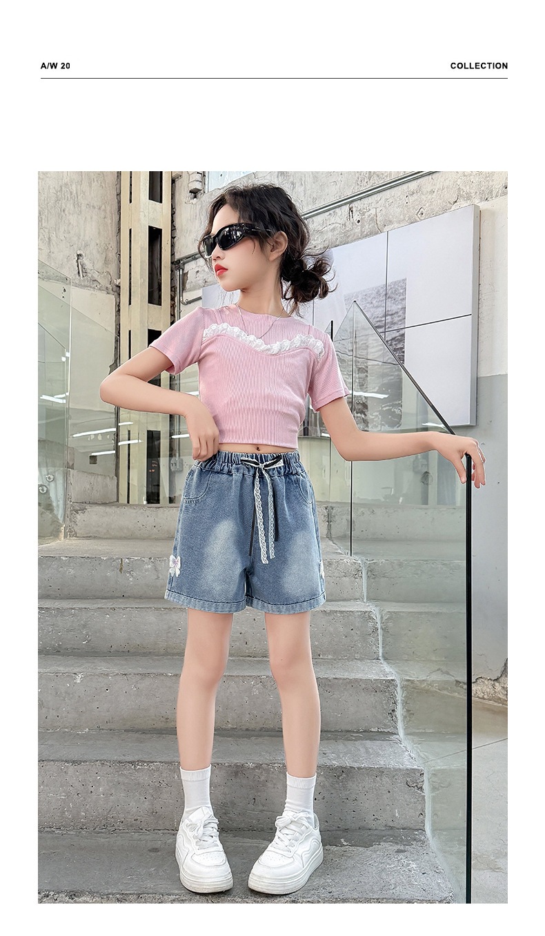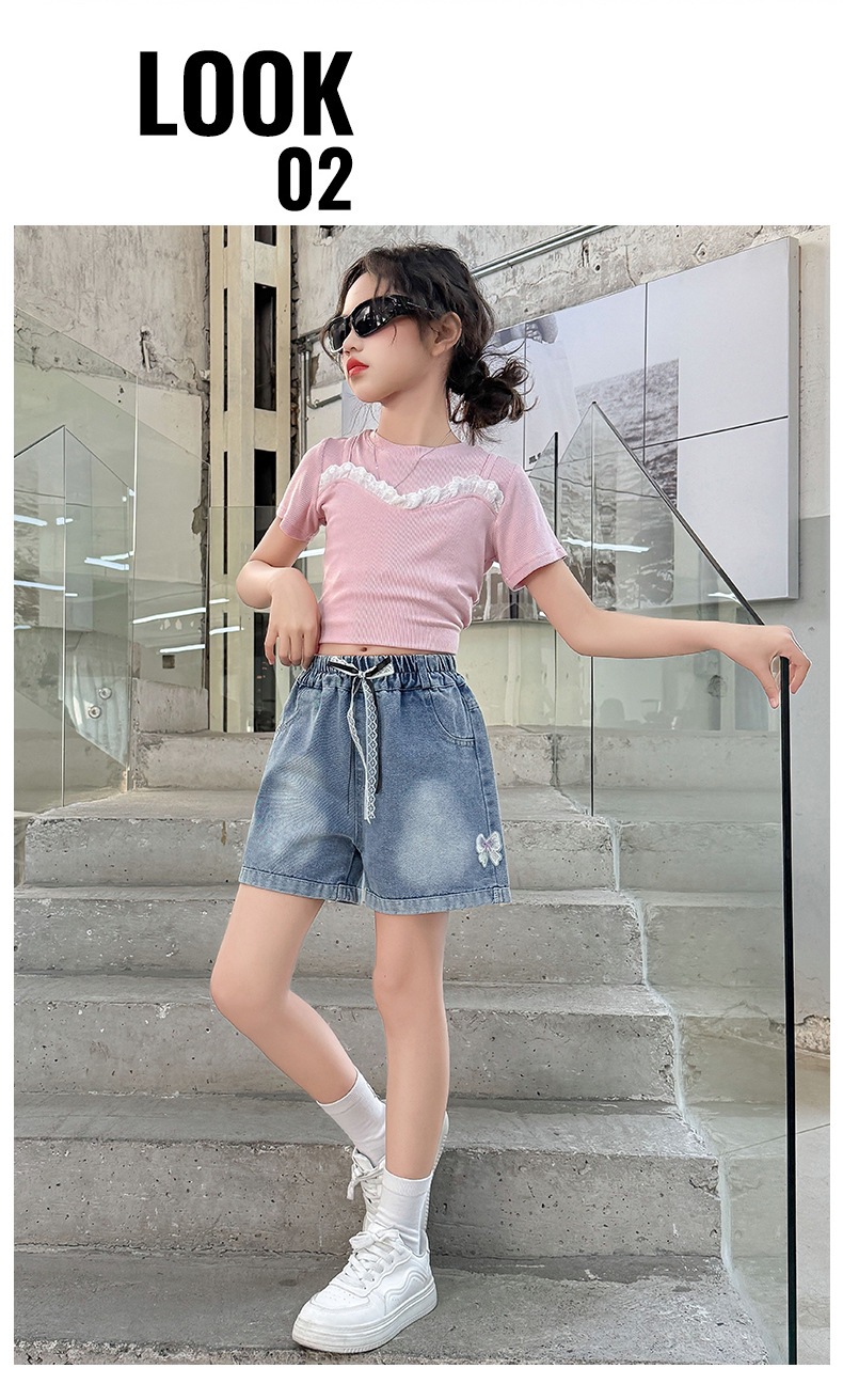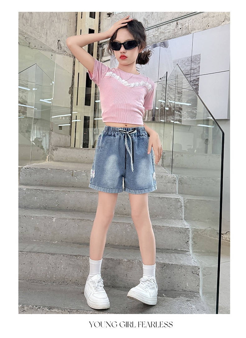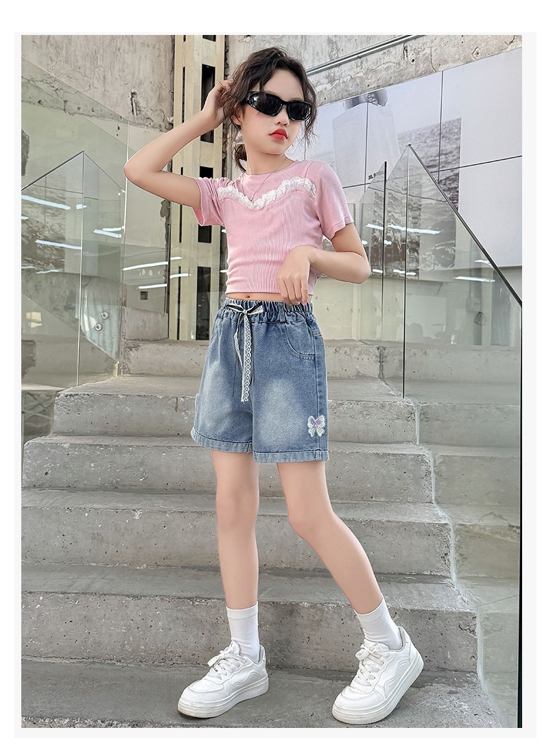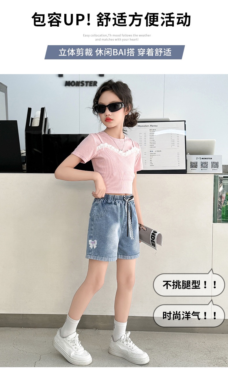 2025 여름 여아 데님 반바지, 중대형 아동 여름 옷, 신형 여아 반바지, 아동 아우터 얇은 바지, 트렌디스토어 가기
