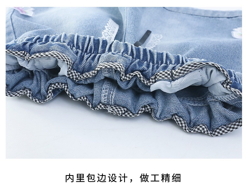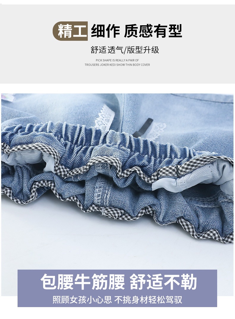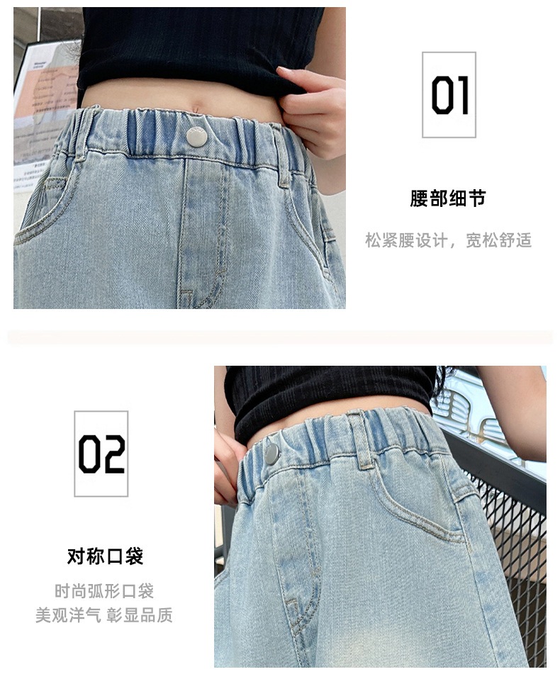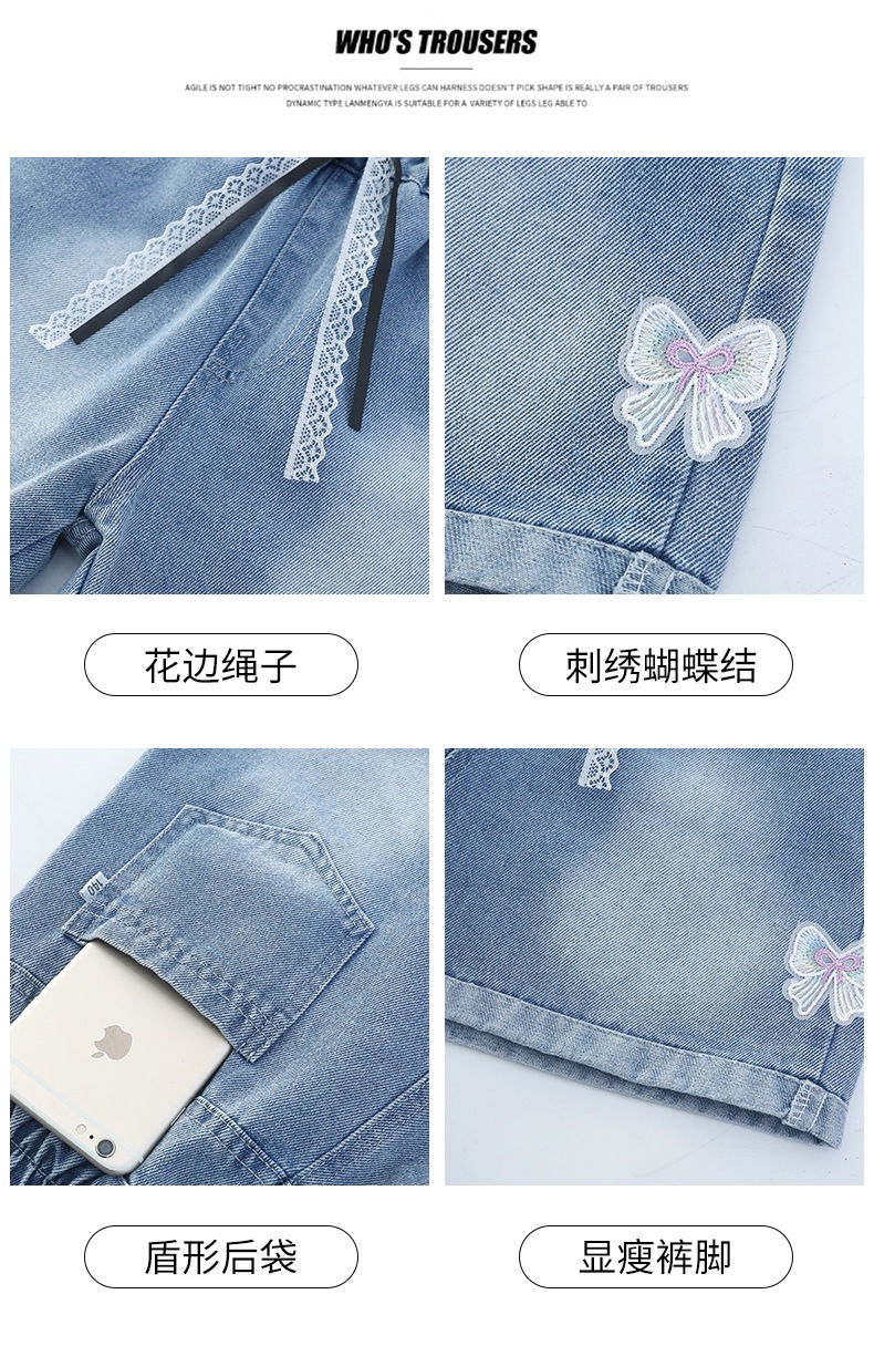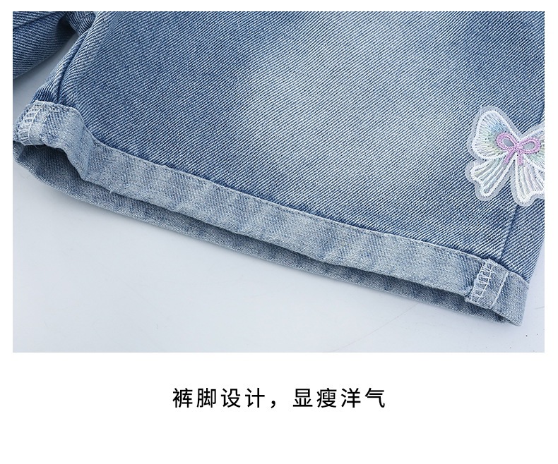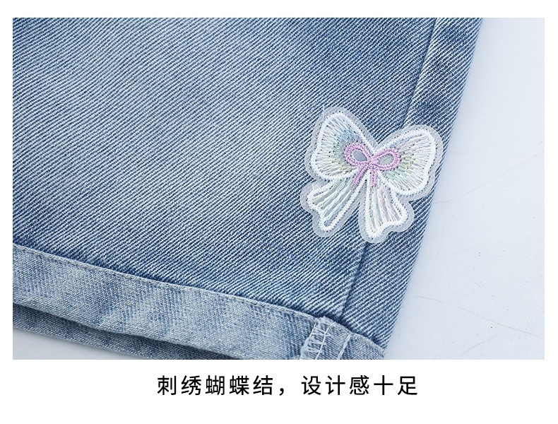 2025 여름 여아 데님 반바지, 중대형 아동 여름 옷, 신형 여아 반바지, 아동 아우터 얇은 바지, 트렌디