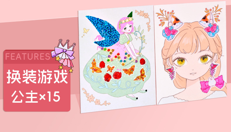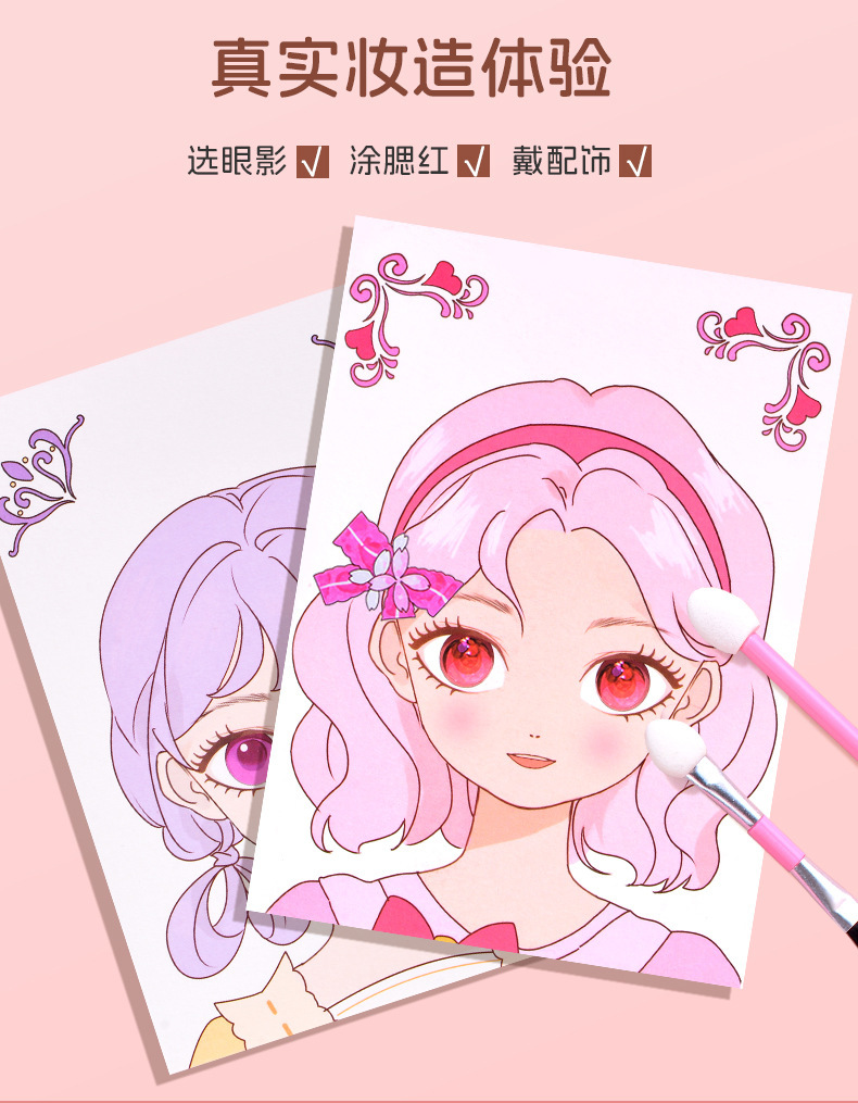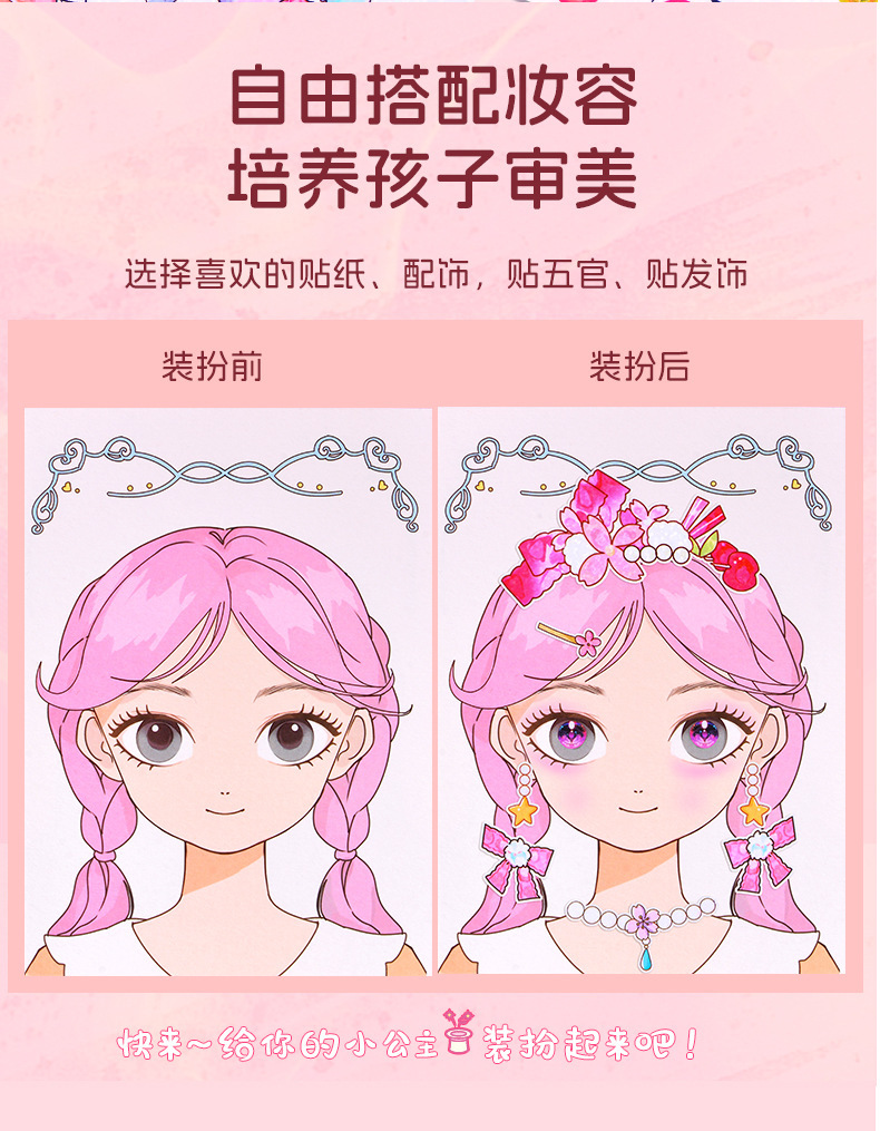 국경을 넘는 마법 공주 어린이 화장품 장난감 세트 소녀 선물 변신 스티커 DIY 수공예 재료 패키지스토어 가기