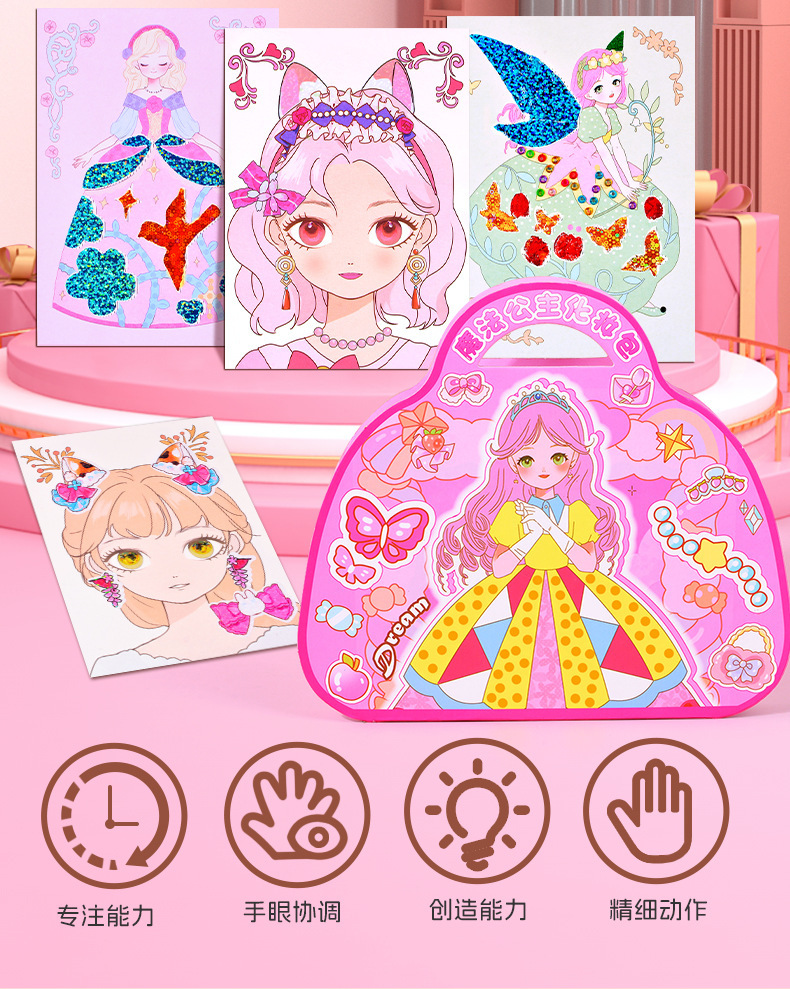 국경을 넘는 마법 공주 어린이 화장품 장난감 세트 소녀 선물 변신 스티커 DIY 수공예 재료 패키지