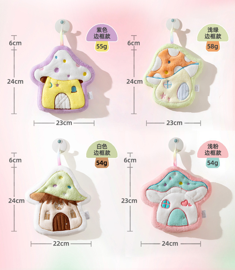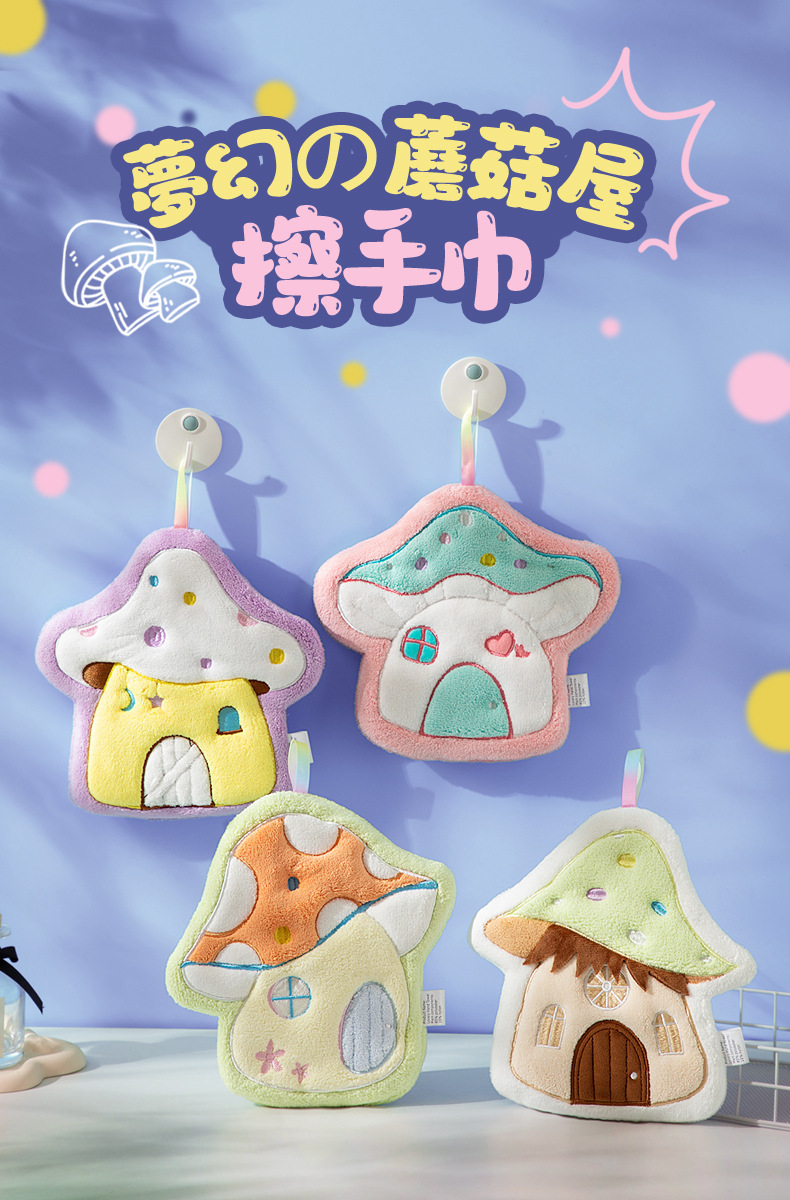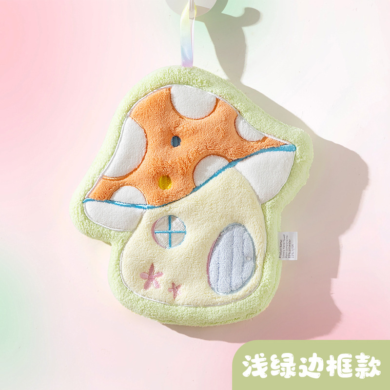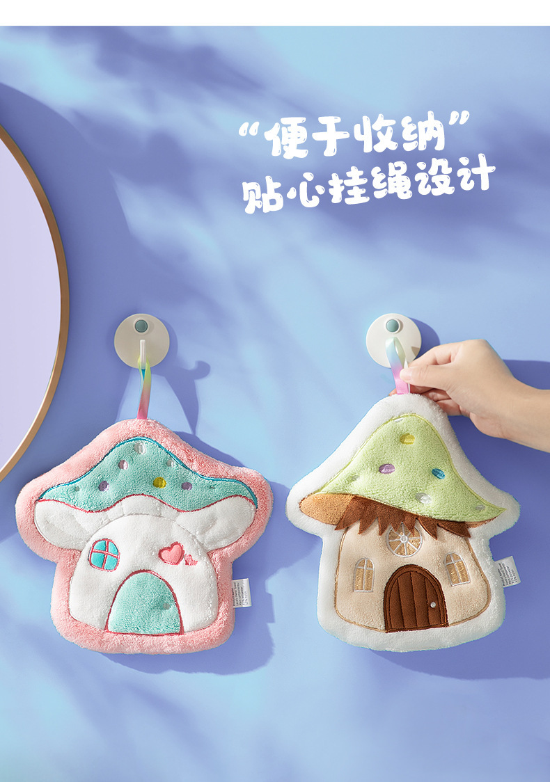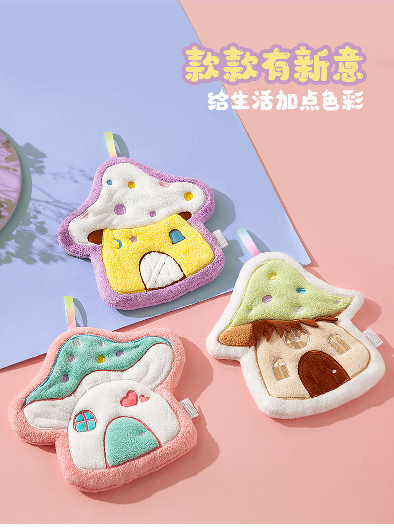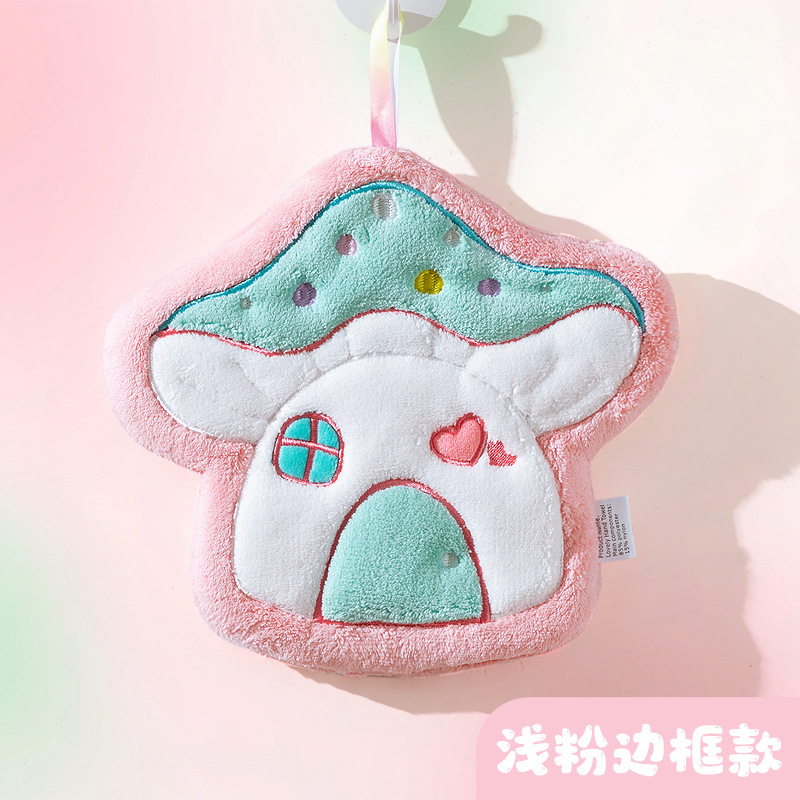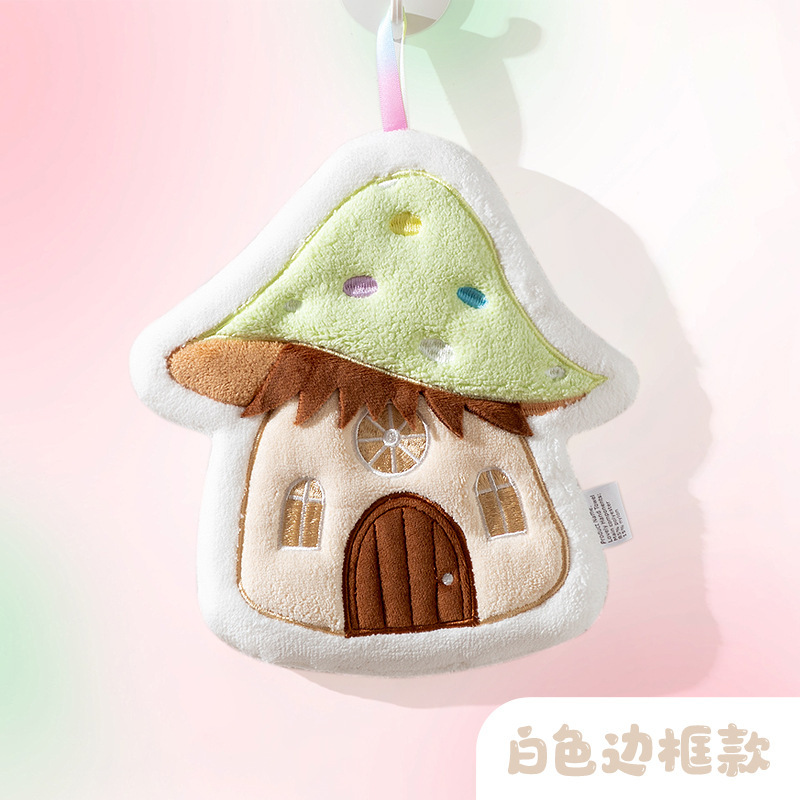 만화 버섯 집 수건 매달려 두꺼운 산호 양털 자수 수건 흡수 귀여운 어린이 손수건 작은 수건