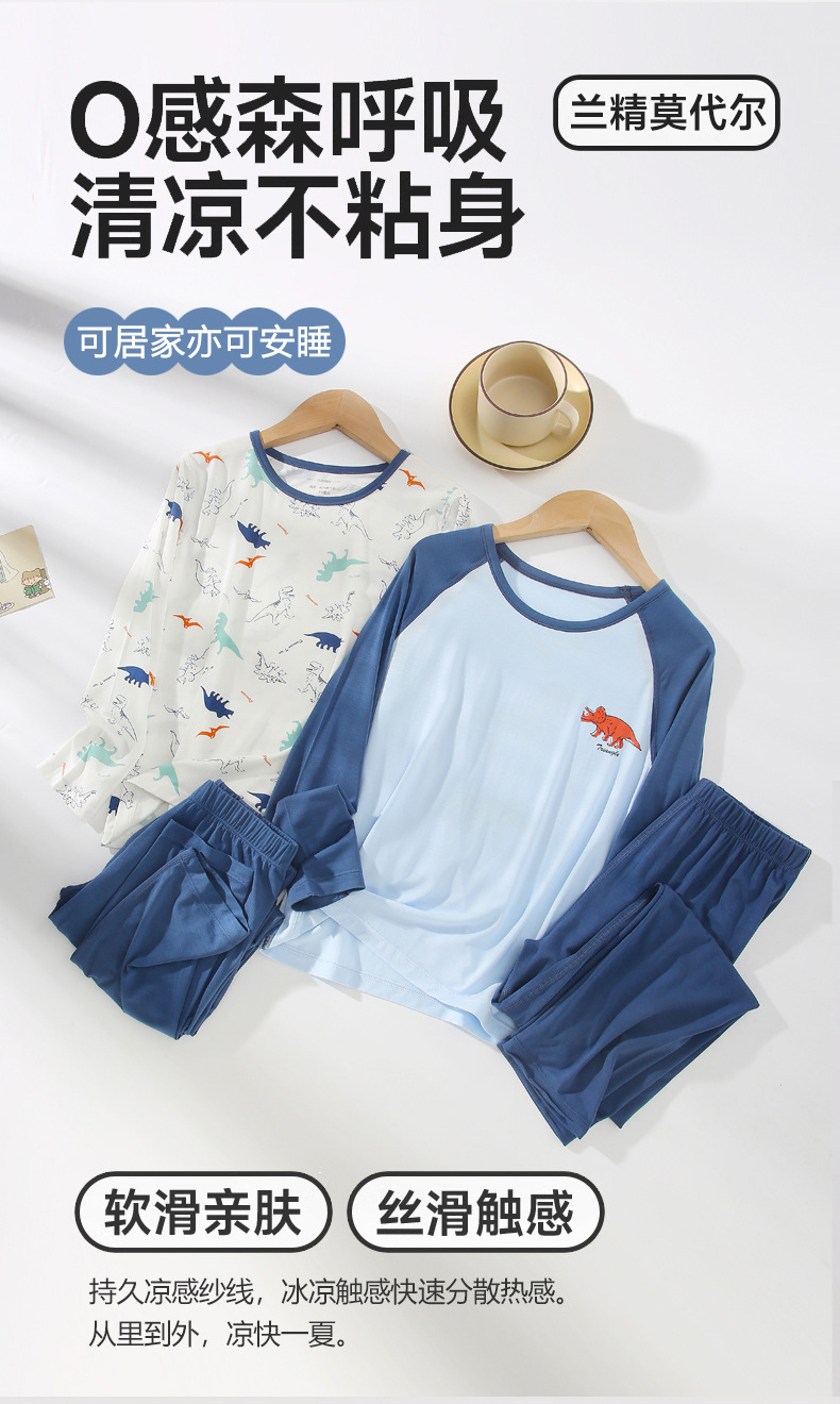 모달 어린이 잠옷 소년 잠옷 카테고리 여름 얇은 에어컨 옷 긴 소매 중대형 어린이 가정 옷 세트