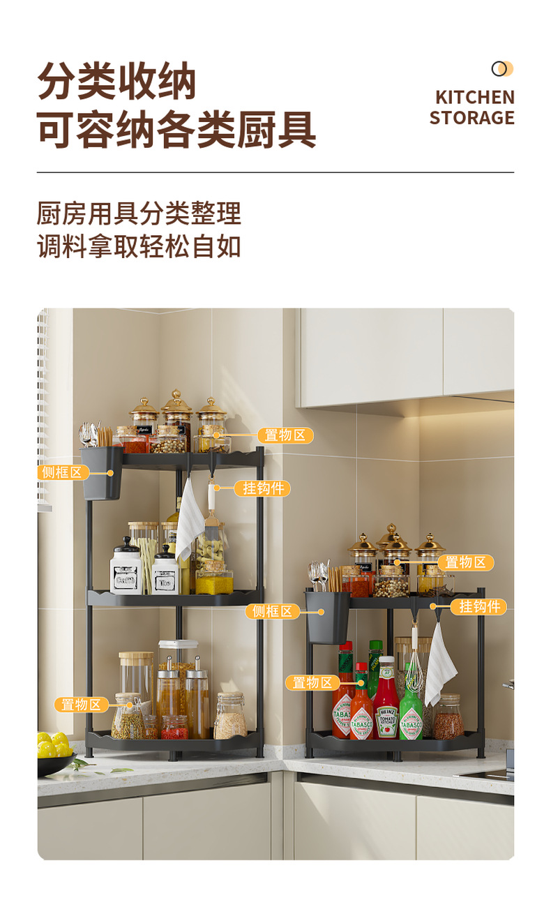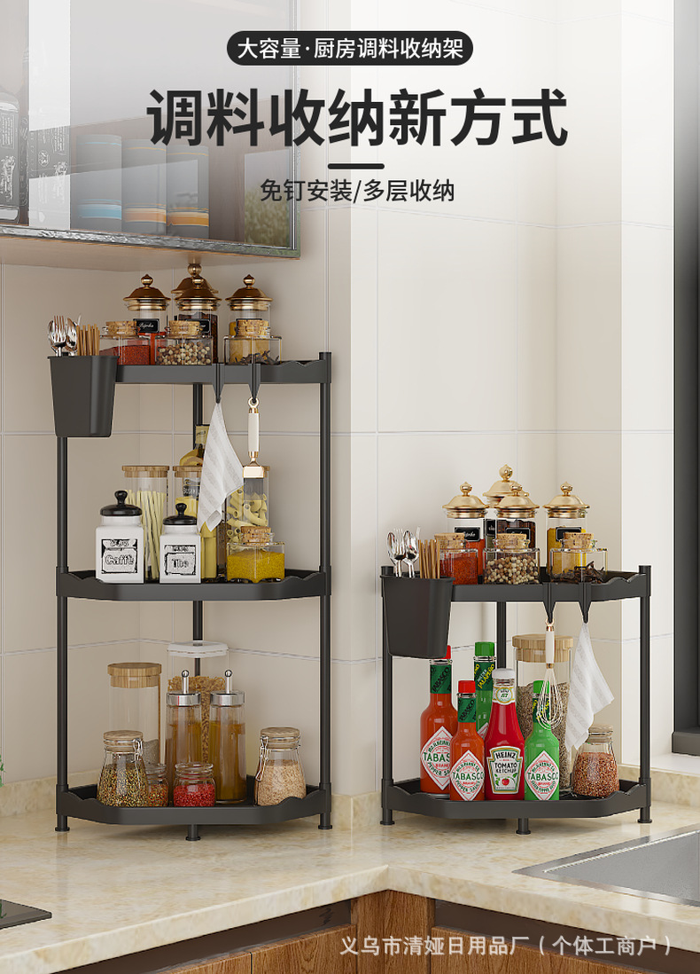 주방 수납 선반, 다기능 수납 선반, 새로운 다층 수납 선반, 펀치 없는 조미료 선반, 새로운 수납 선반