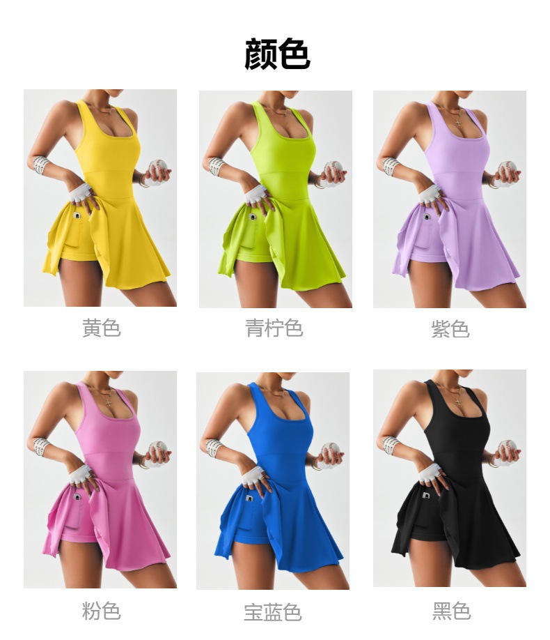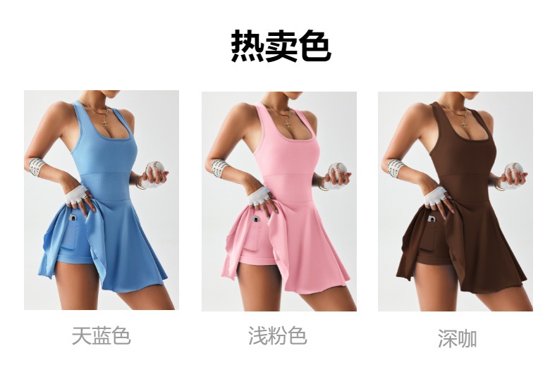 여성을 위한 포켓 안감 요가 피트니스 스포츠 스커트가 있는 국경 간 인기 노출 방지 섹시한 아름다운 등 원피스 테니스 스커트스토어 가기