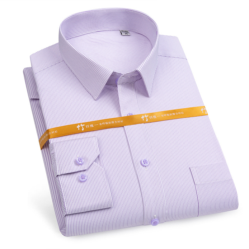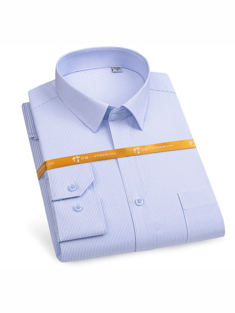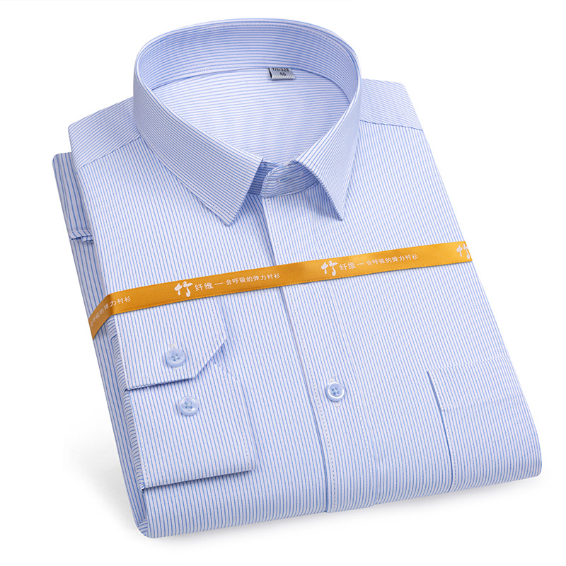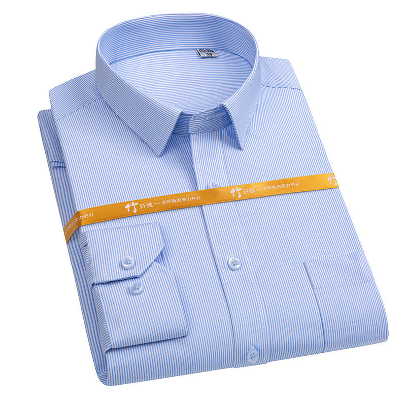 대나무 섬유 사업 블루 핀스트라이프 전문 셔츠 작업복 원피스 남성 캐주얼 비 다림질 주름 셔츠스토어 가기