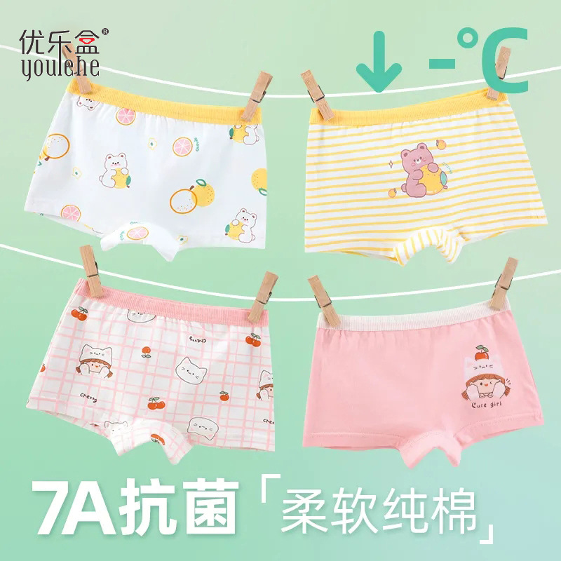 여름 여아 속옷, 사각 면 반바지, 어린이 사각 항균 속옷, 엉덩이를 꼬지 않는 아기 소녀스토어 가기