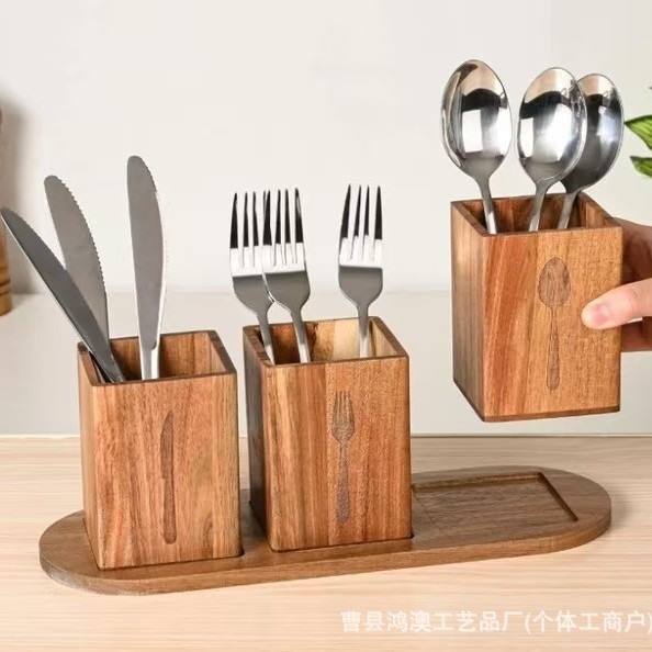 미국식 시골풍 나무 식기 보관함(받침대 포함), 스테인리스 은식기(칼, 포크) 보관함(칸막이 포함)