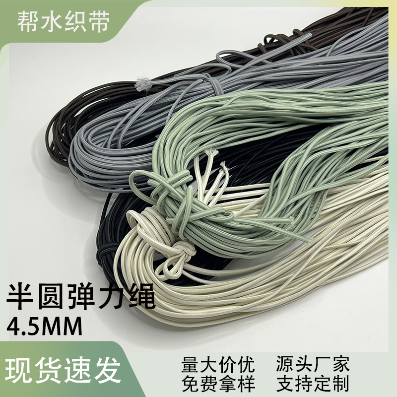 4.5mm 반원형 탄성 로프 타원형 흑백 컬러 라텍스 신발 끈 스웨트 셔츠 모자 로프 바지 벨트 마스크 도매