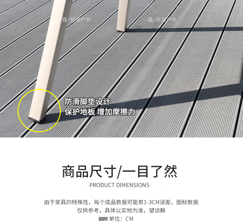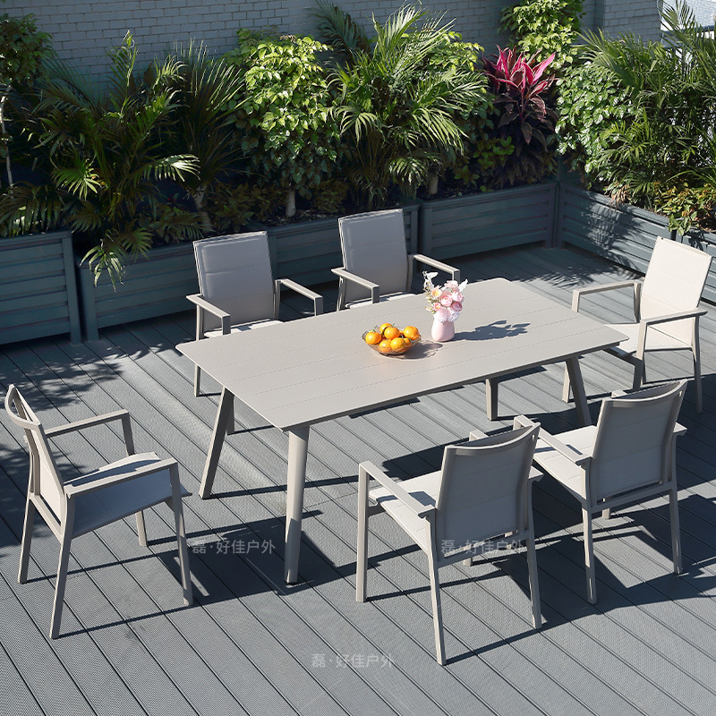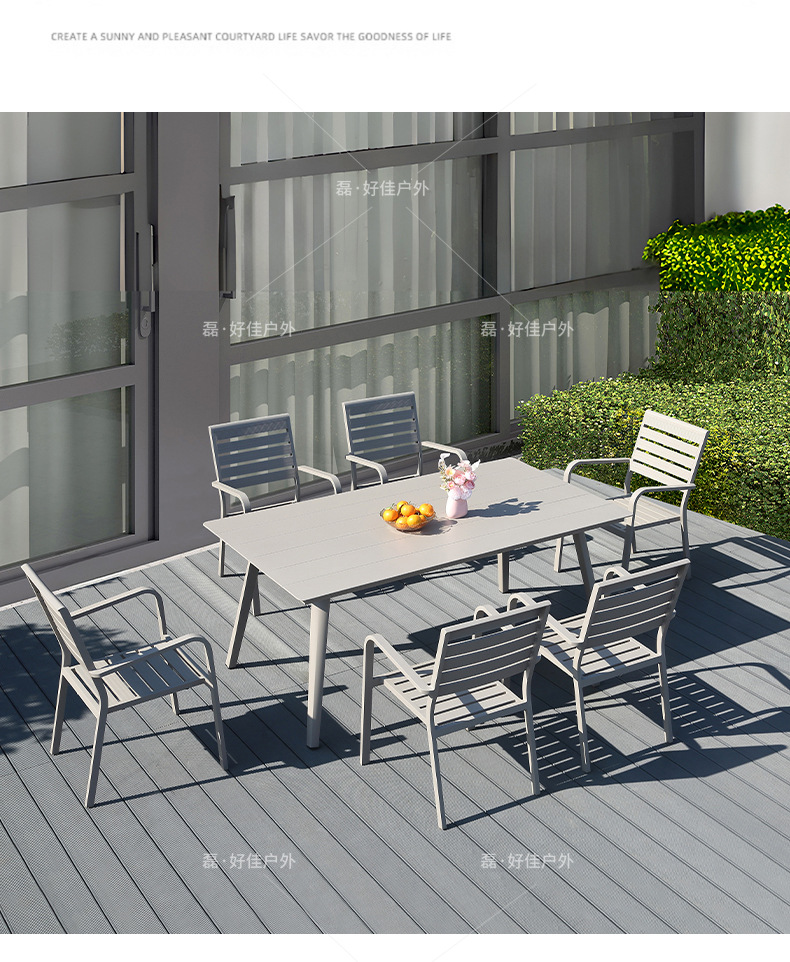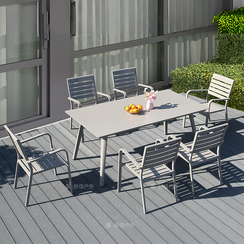 • 6개의 버니어 의자 + 150*90cm 알루미늄 플레이트 긴 테이블