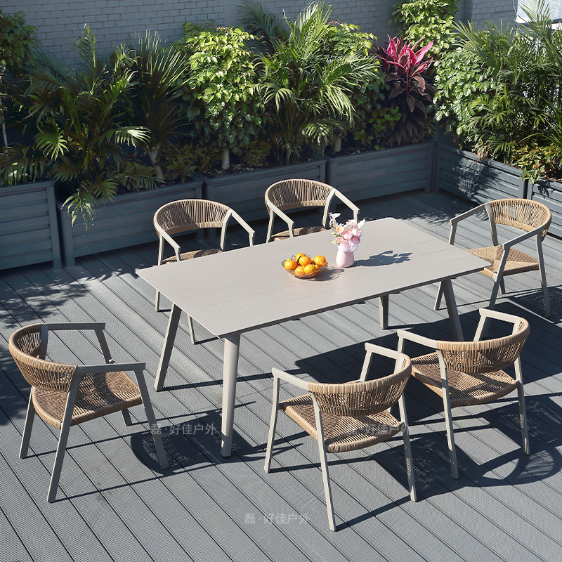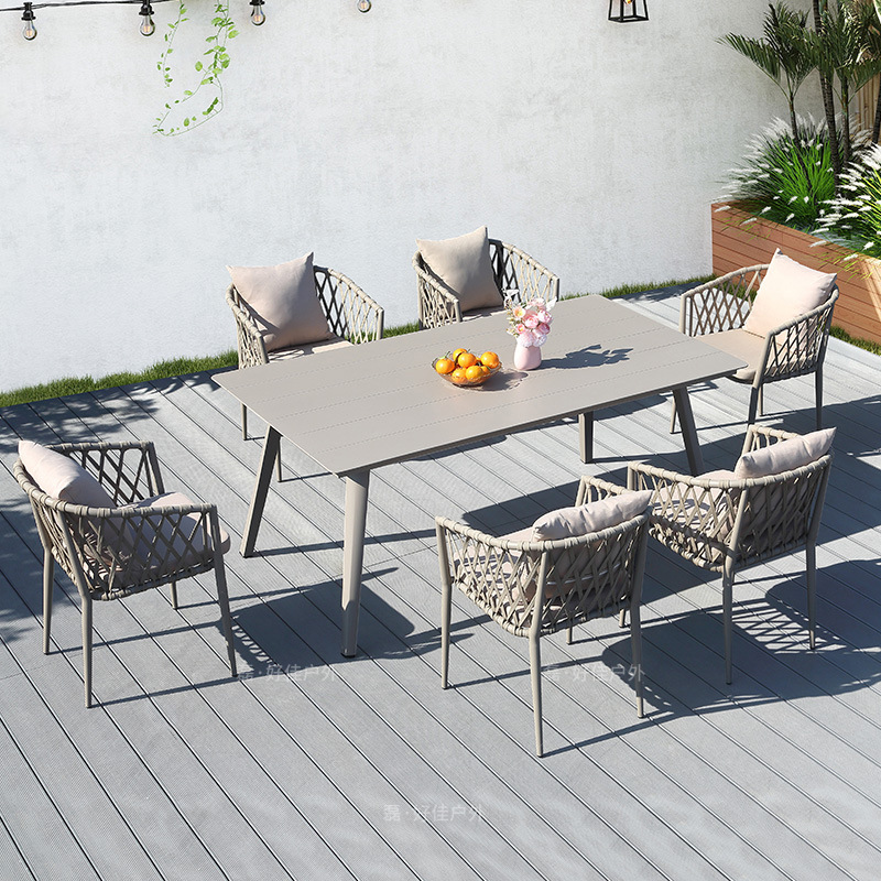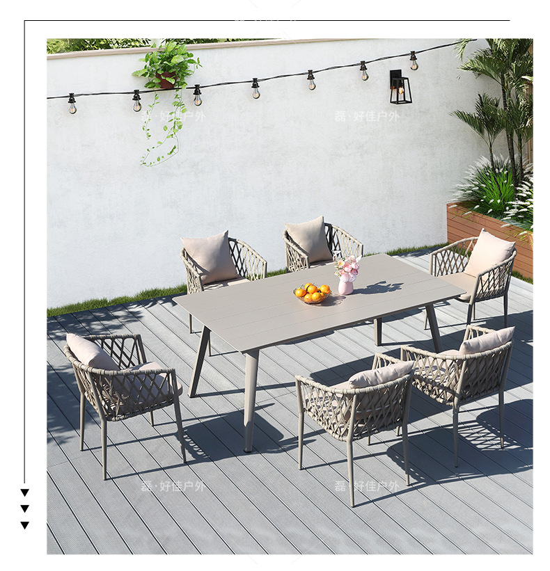 • 곡선 파이프 가로 줄무늬 의자 6개 + 150*90cm 알루미늄 판 긴 테이블
