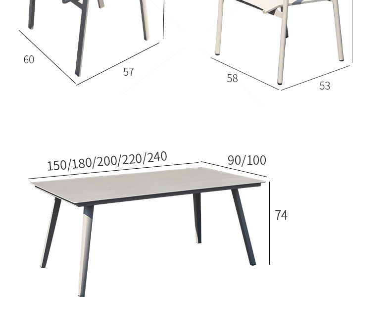 • 150*90*74cm 알루미늄 판 롱 테이블