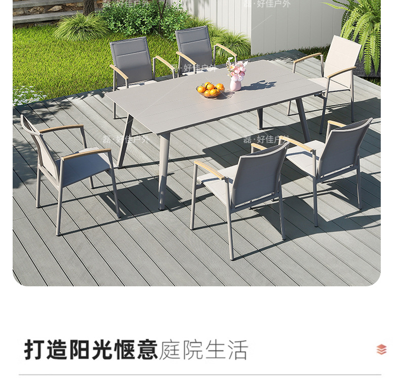 • 6개의 플라스틱 나무 팔걸이 단층 천 의자 + 180*90cm 알루미늄 판 긴 테이블