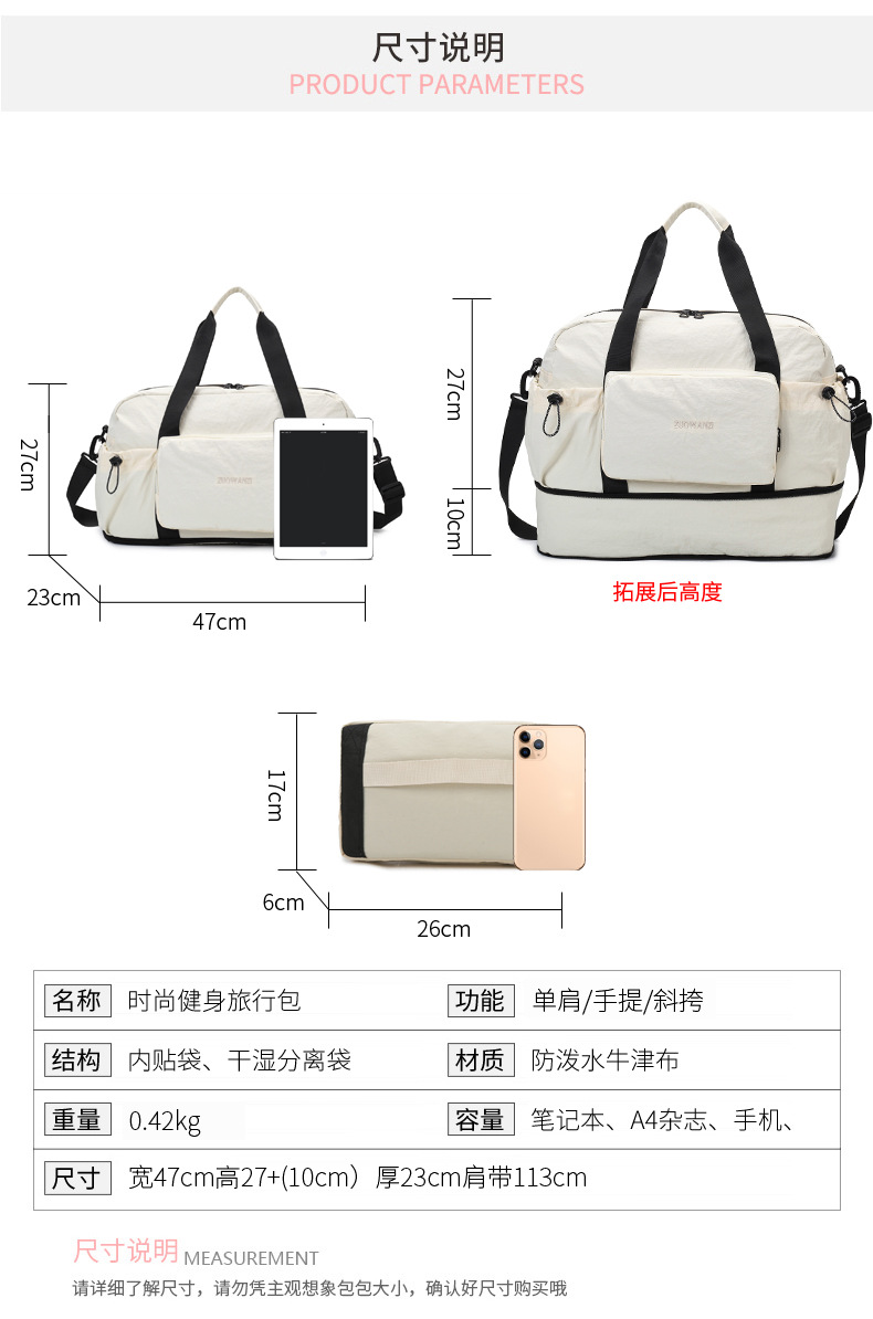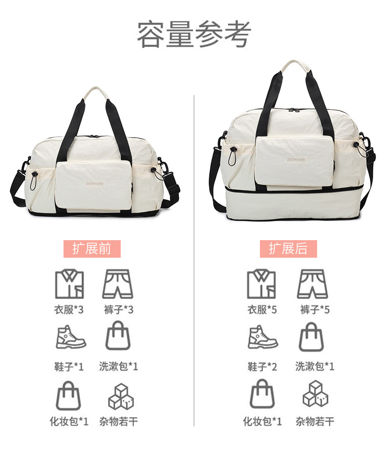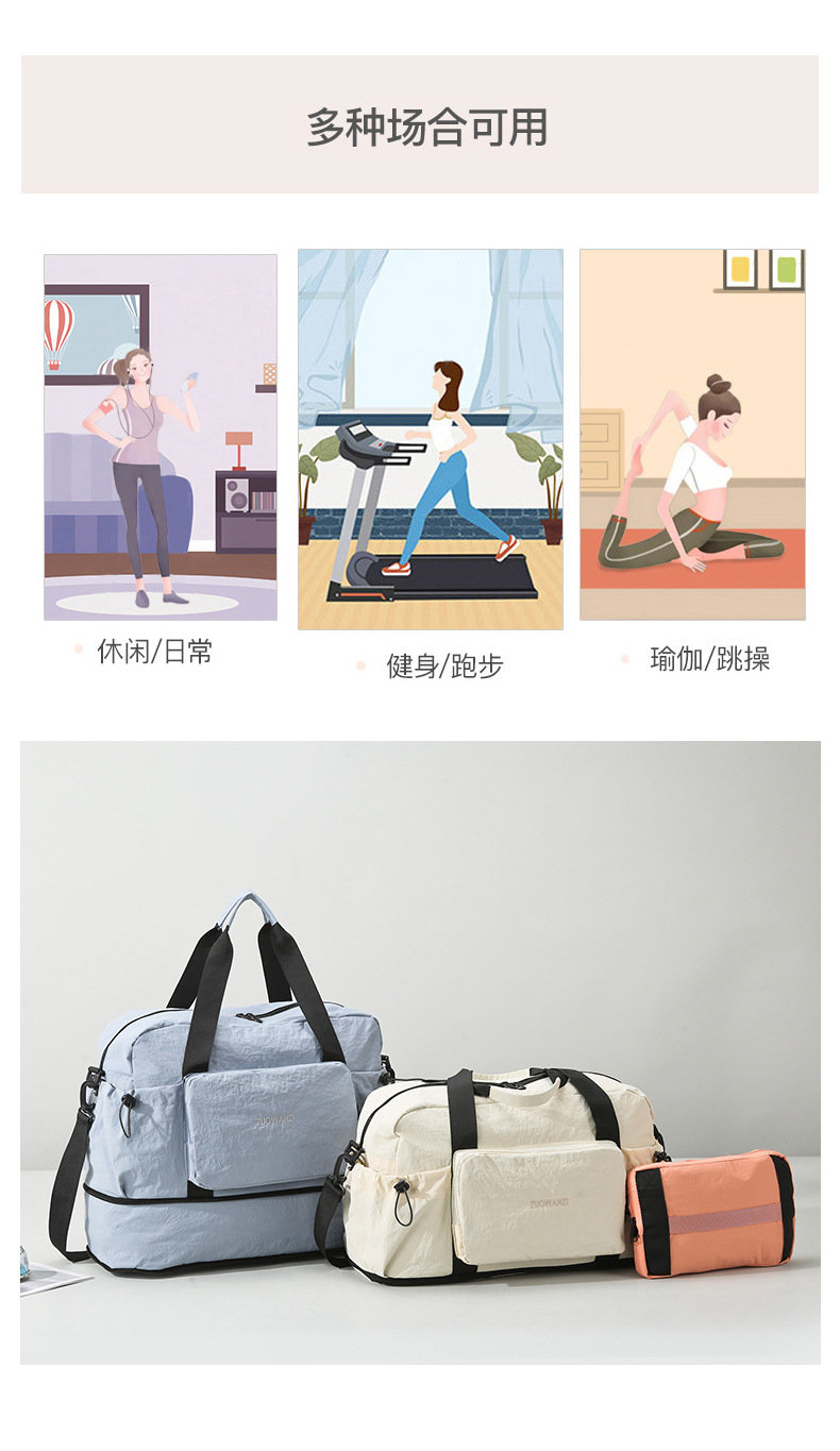 여성용 여행가방, 가벼운 휴대용 여행가방, 대용량 접이식 수납가방, 건식 및 습식 분리 피트니스 가방