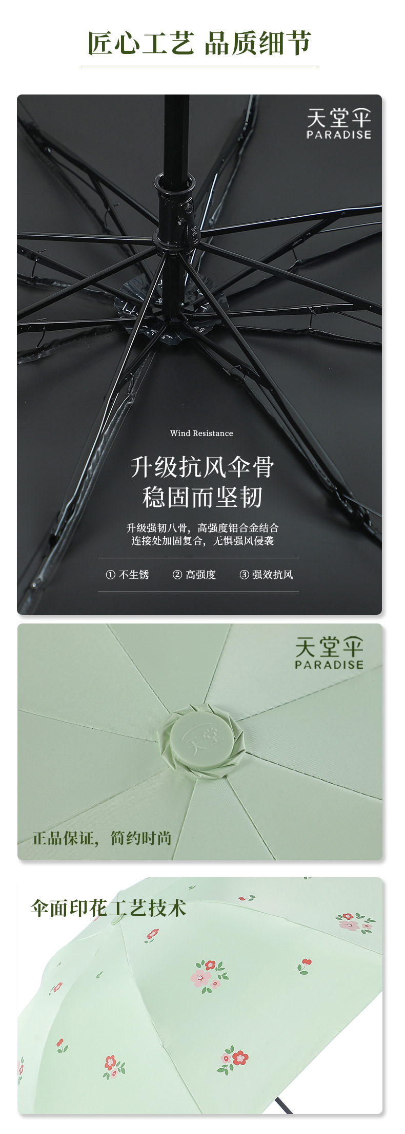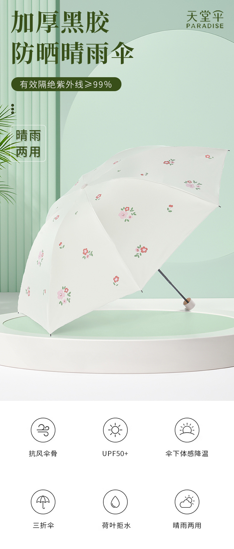 남부 프랑스 휴일 천국 우산 도매 비닐 코팅 비 또는 빛 우산 자외선 방지 고출력 보호 직물