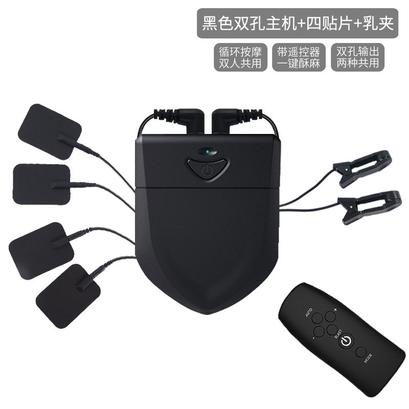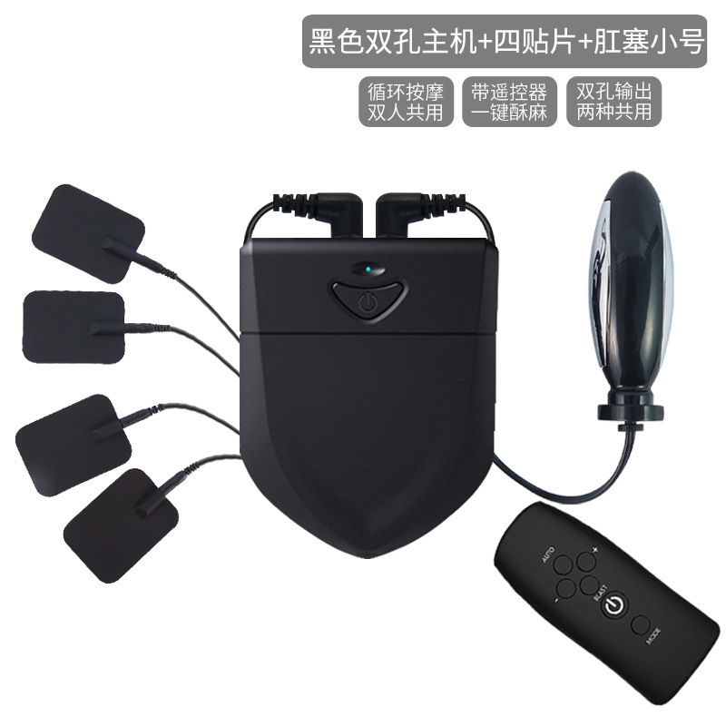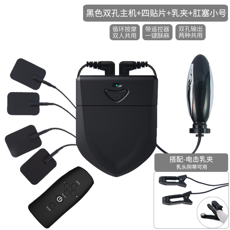 • 이중 구멍 원격 제어 버전 - 패치 4개 + 유두 클램프 + 전기 충격 항문 플러그