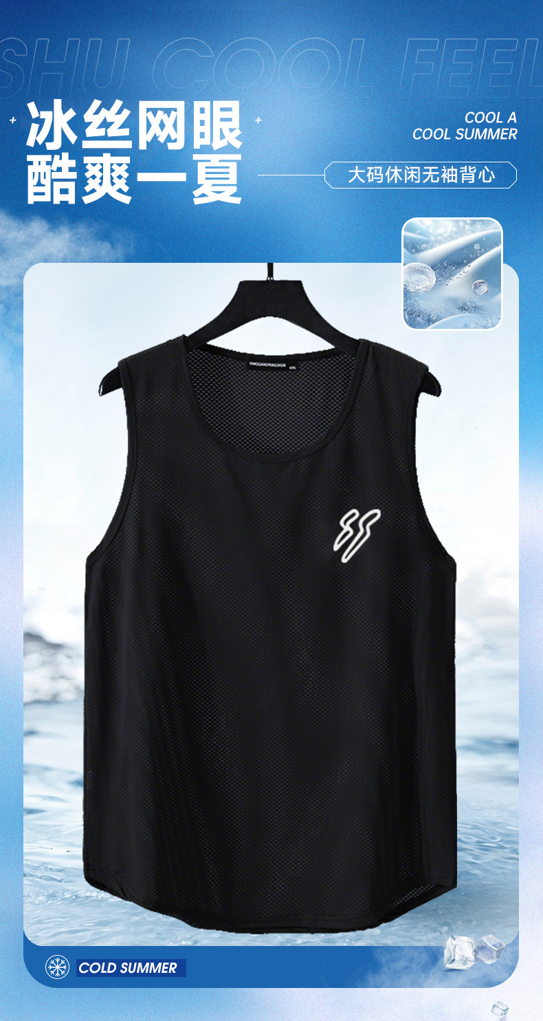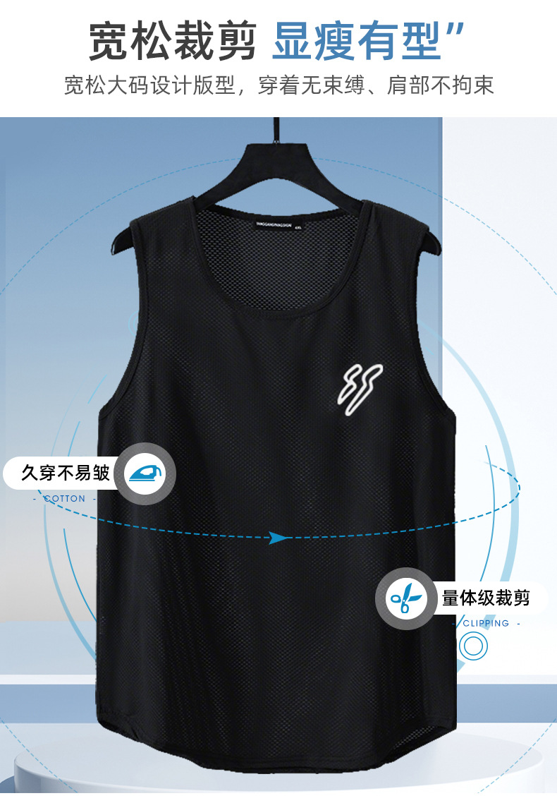 비료 추가 조끼 남성 아이스 실크 메쉬 빠른 건조 여름 지방 플러스 사이즈 스포츠 민소매 허들 스웨트 셔츠 150.00kg스토어 가기