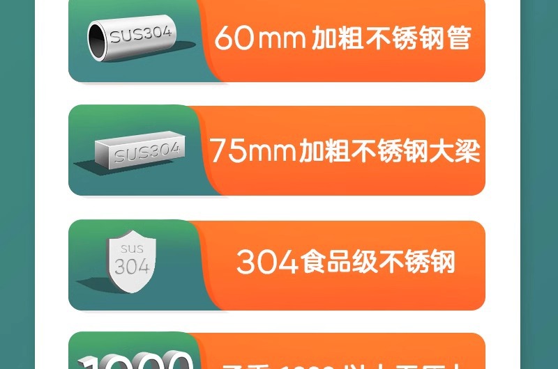 • 두꺼운 304 스테인레스 스틸 [13 빔] 하이 테일
