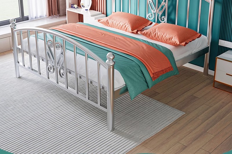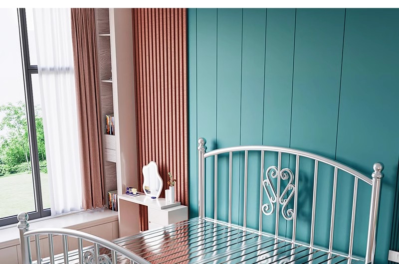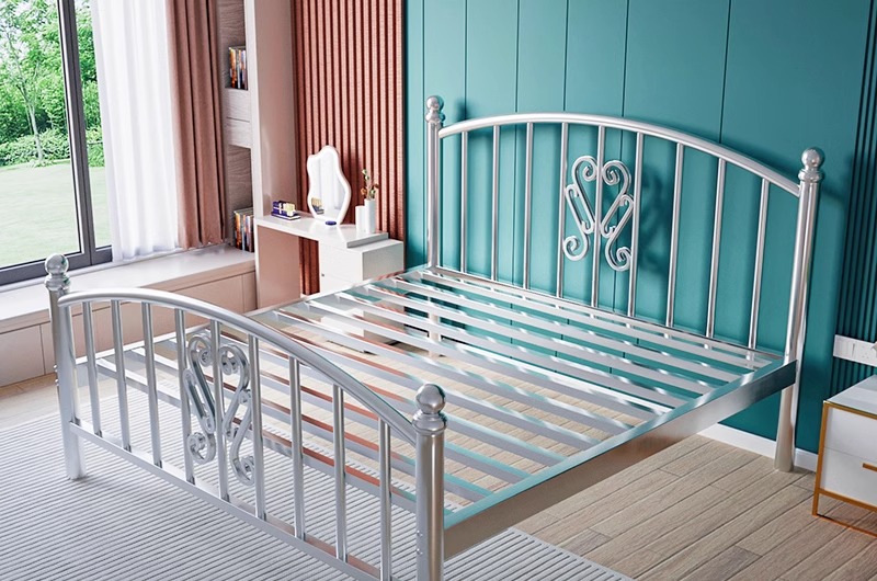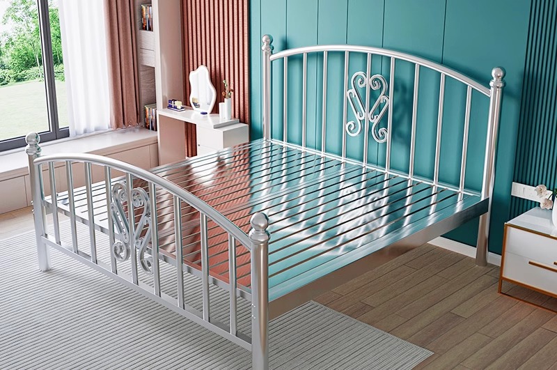304 스테인레스 스틸 침대 1.68m 두꺼운 싱글 더블 침대 유럽 스타일의 간단한 임대 가정용 비철 침대 프레임