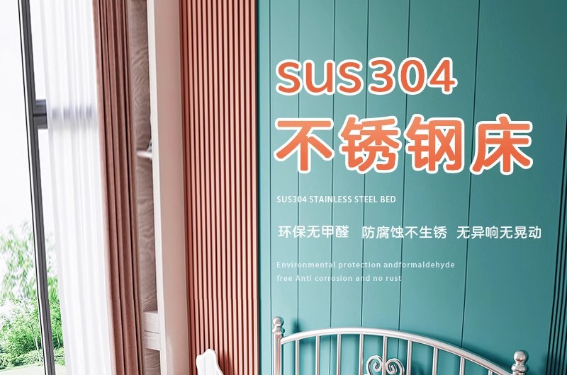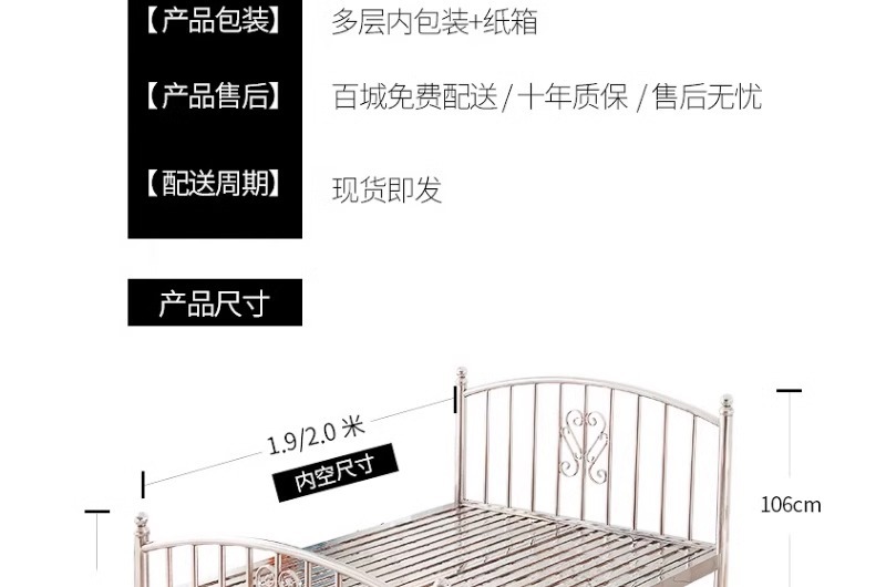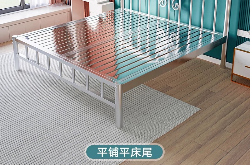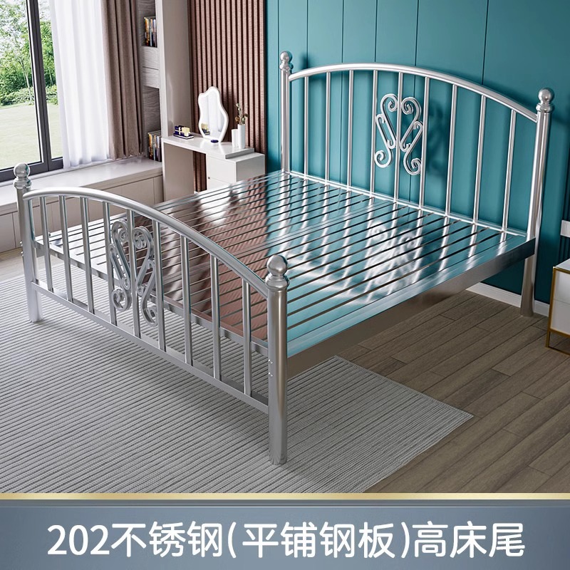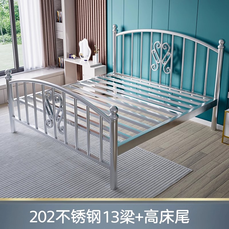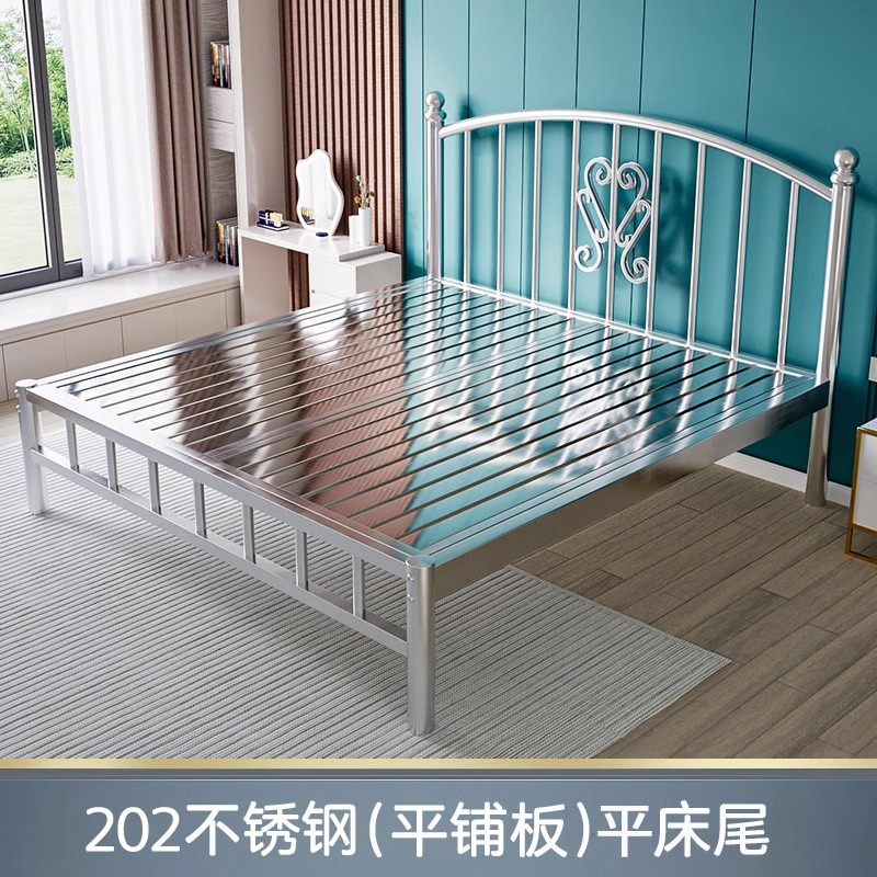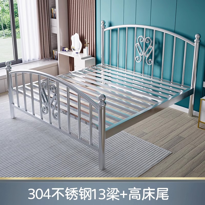 304 스테인레스 스틸 침대 1.68m 두꺼운 싱글 더블 침대 유럽 스타일의 간단한 임대 가정용 비철 침대 프레임스토어 가기