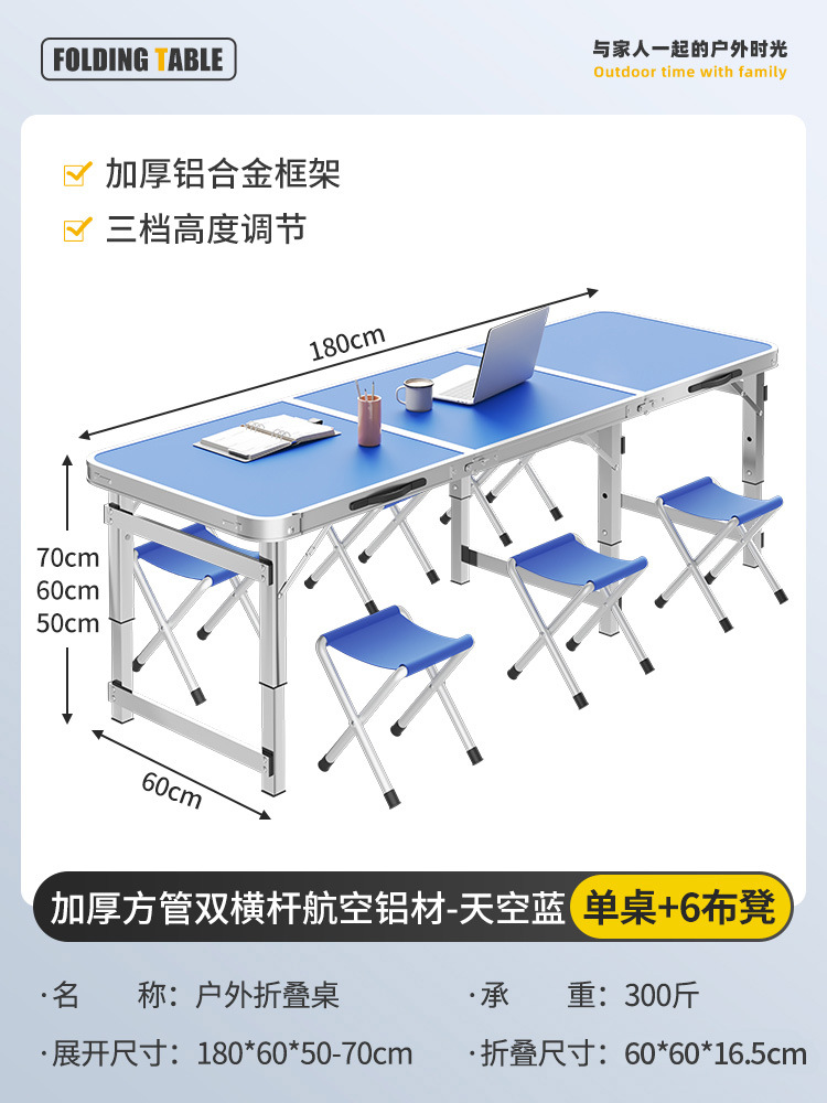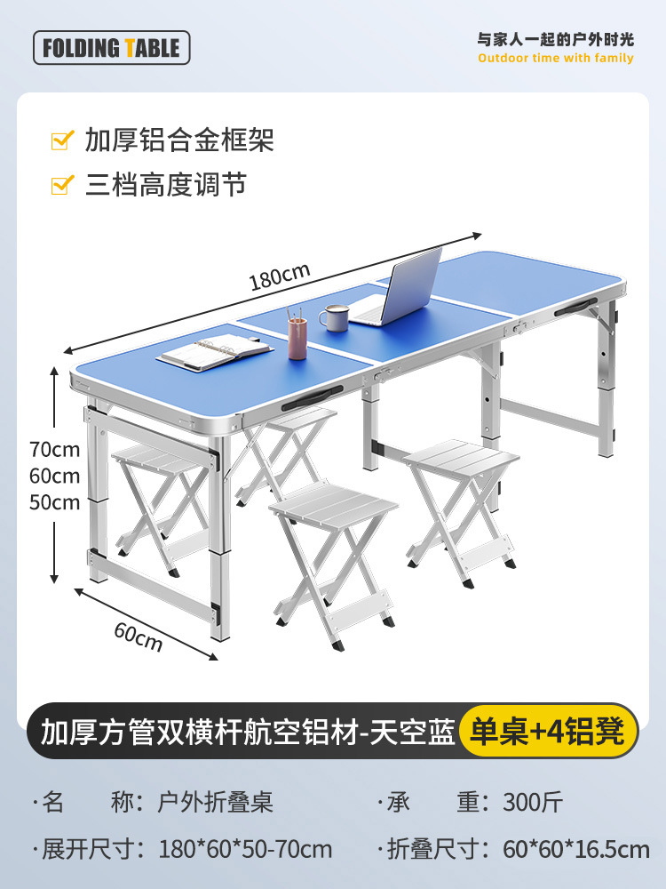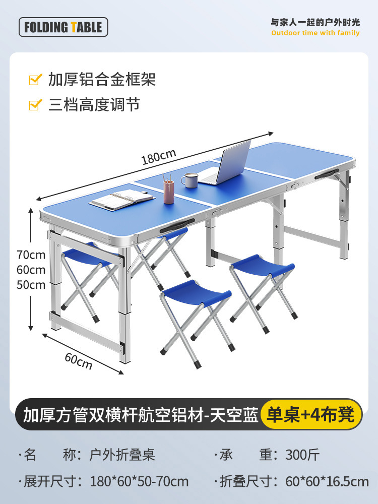 • [두꺼운 사각 튜브 이중 크로스바 항공 알루미늄] 180cm 하늘색 + 알루미늄 스툴 4개 설치 불필요