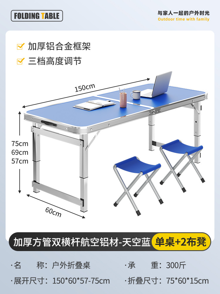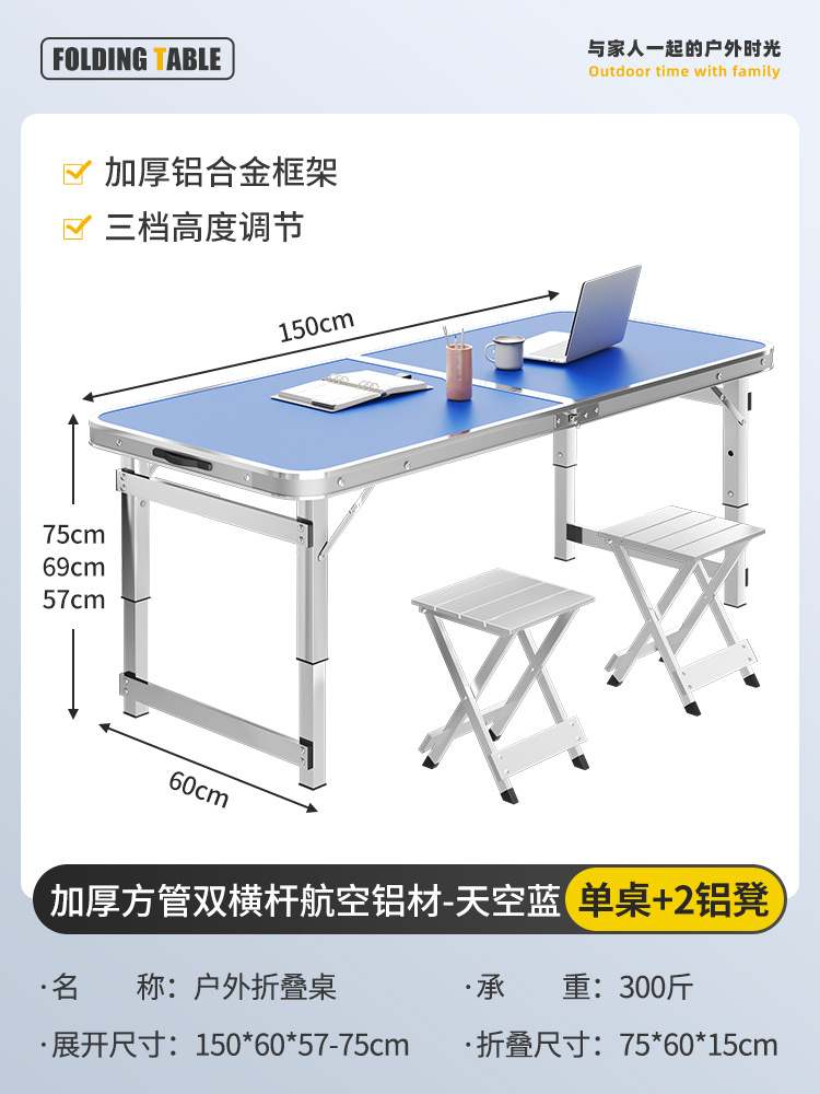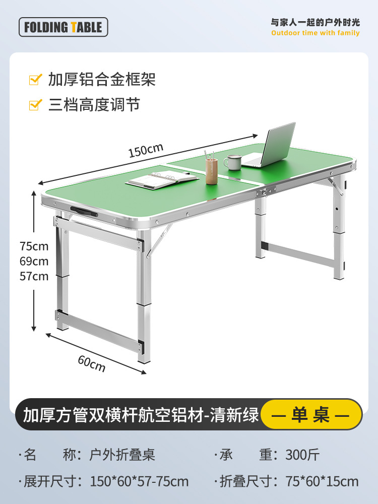 • [두꺼운 사각 튜브 이중 크로스바 항공 알루미늄] 150cm 신록 + 알루미늄 스툴 2개 설치 불필요