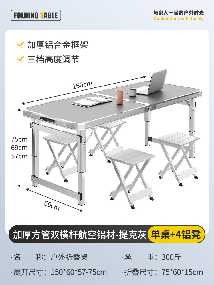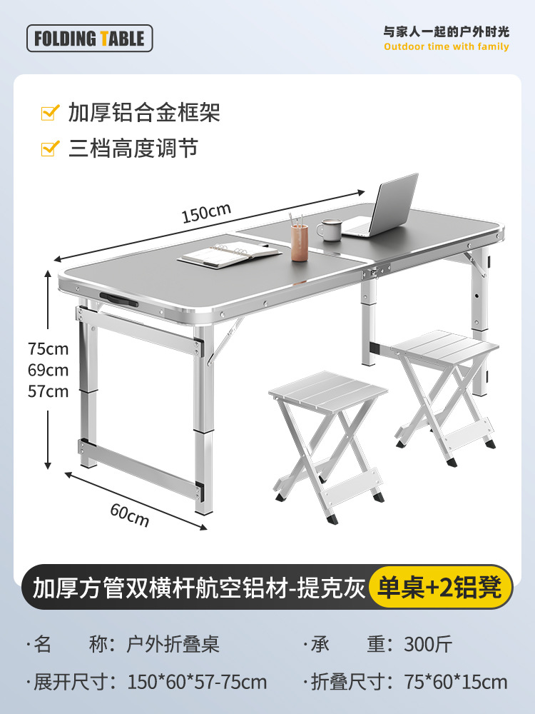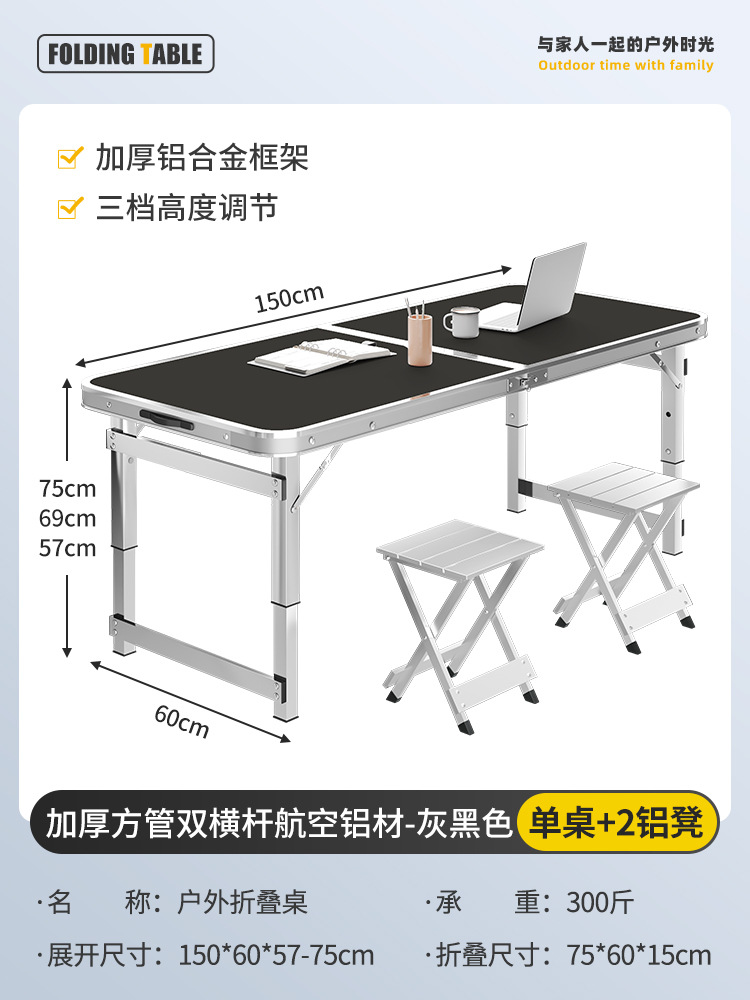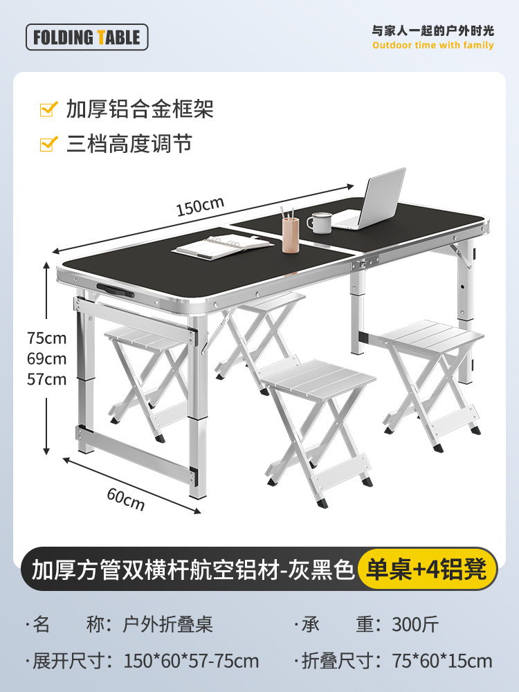 • [두꺼운 사각형 튜브 이중 크로스바 항공 알루미늄] 150cm 회색 검정색 + 알루미늄 스툴 4개 설치 필요 없음