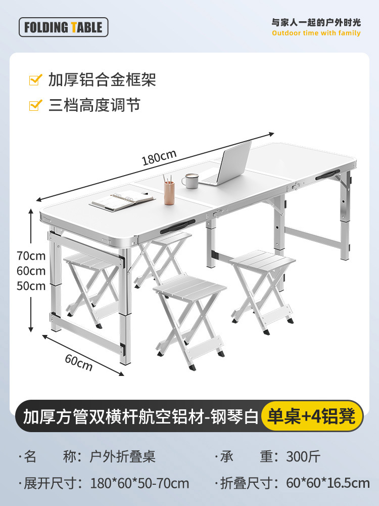 • [두꺼운 사각 튜브 이중 크로스바 항공 알루미늄] 180cm 피아노 화이트 + 알루미늄 스툴 4개 설치 불필요
