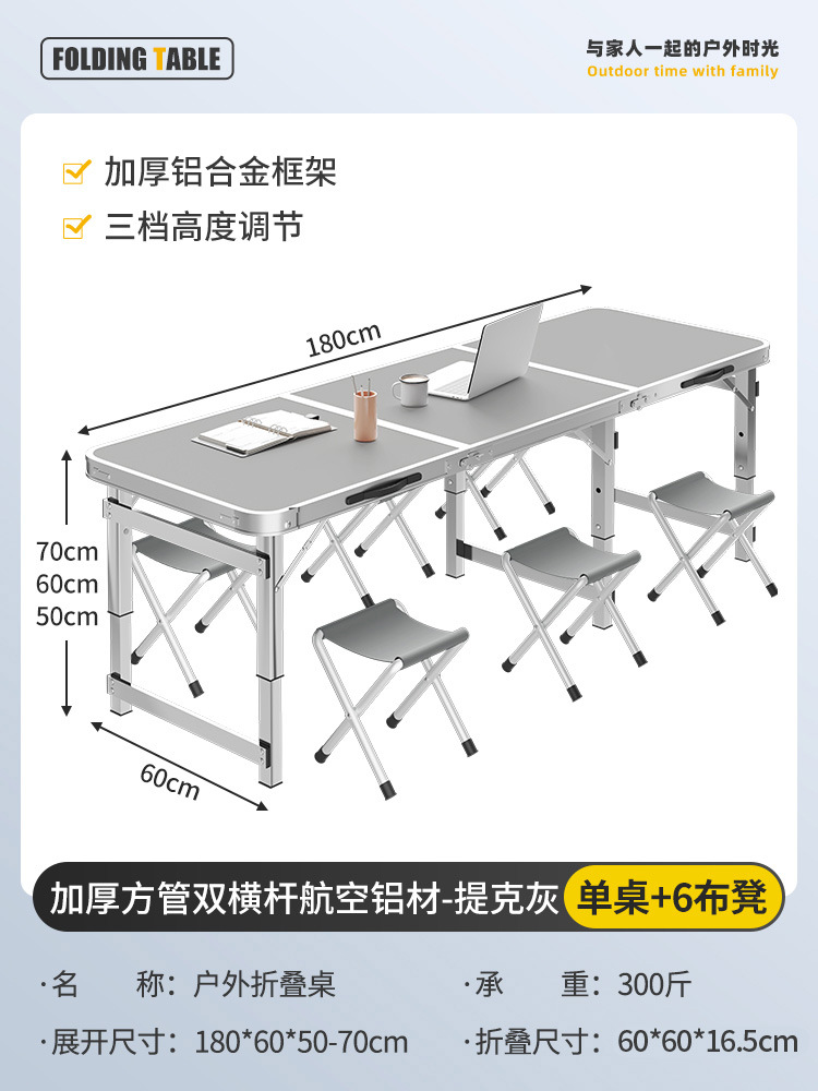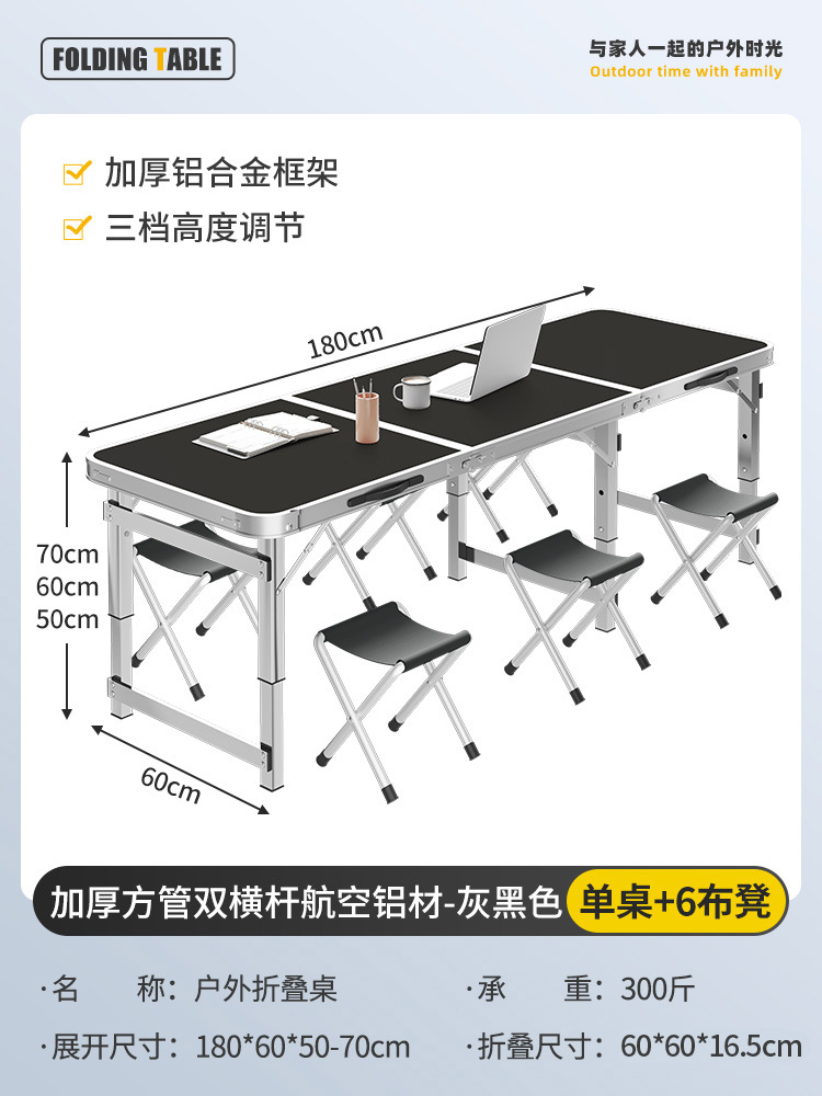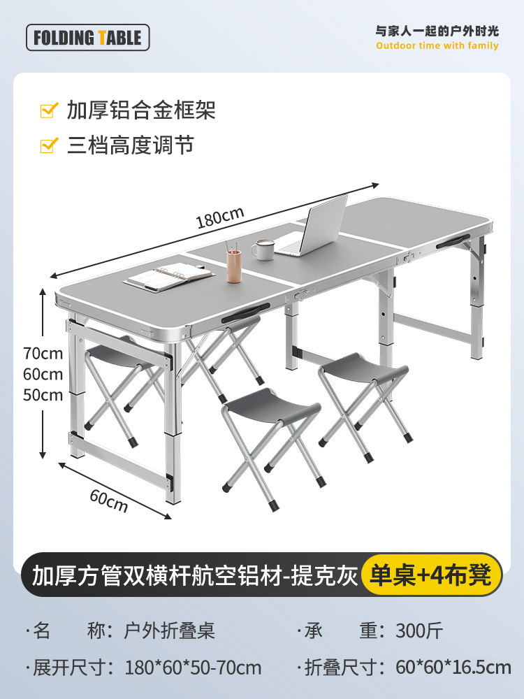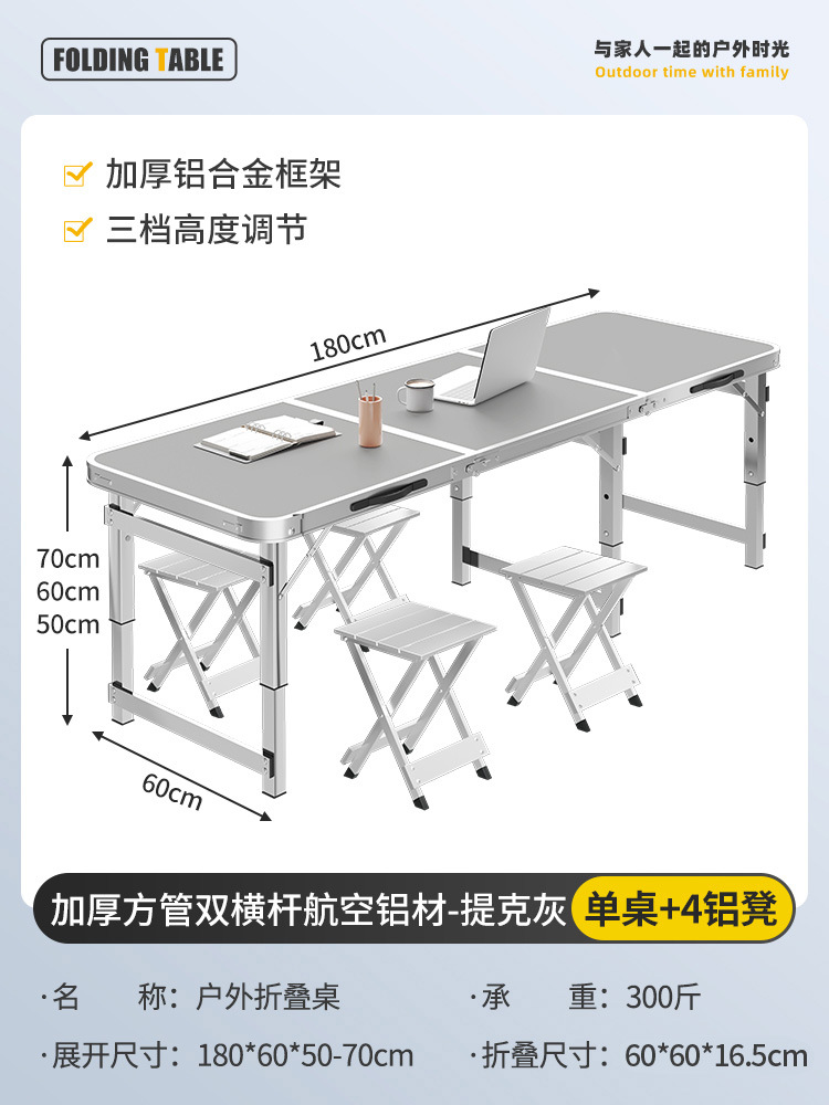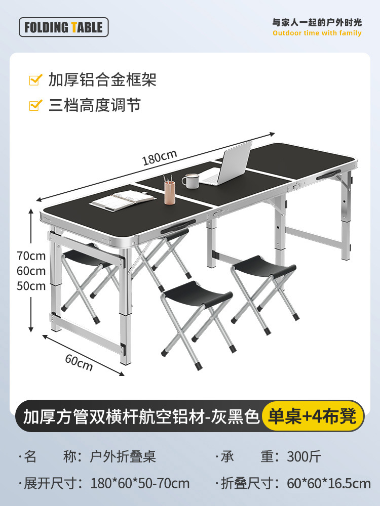 • [두꺼운 사각 튜브 이중 크로스바 항공 알루미늄] 180cm 그레이 블랙 + 알루미늄 스툴 4개 설치 불필요