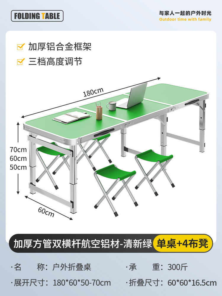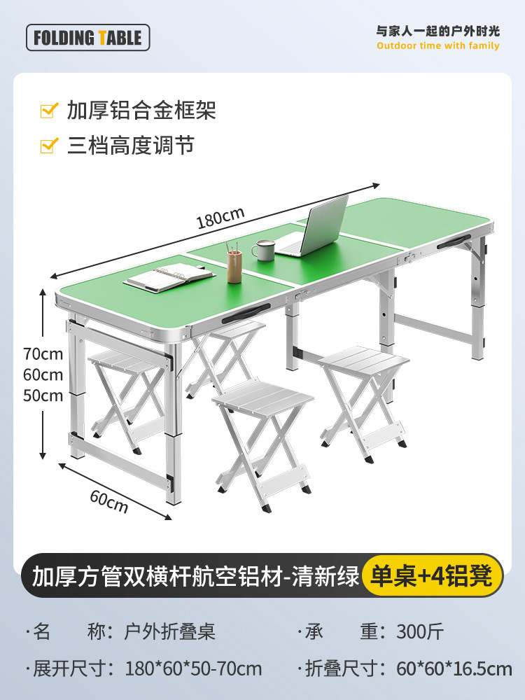 • [두꺼운 사각 튜브 이중 크로스바 항공 알루미늄] 180cm 신록 + 알루미늄 스툴 4개 설치 불필요