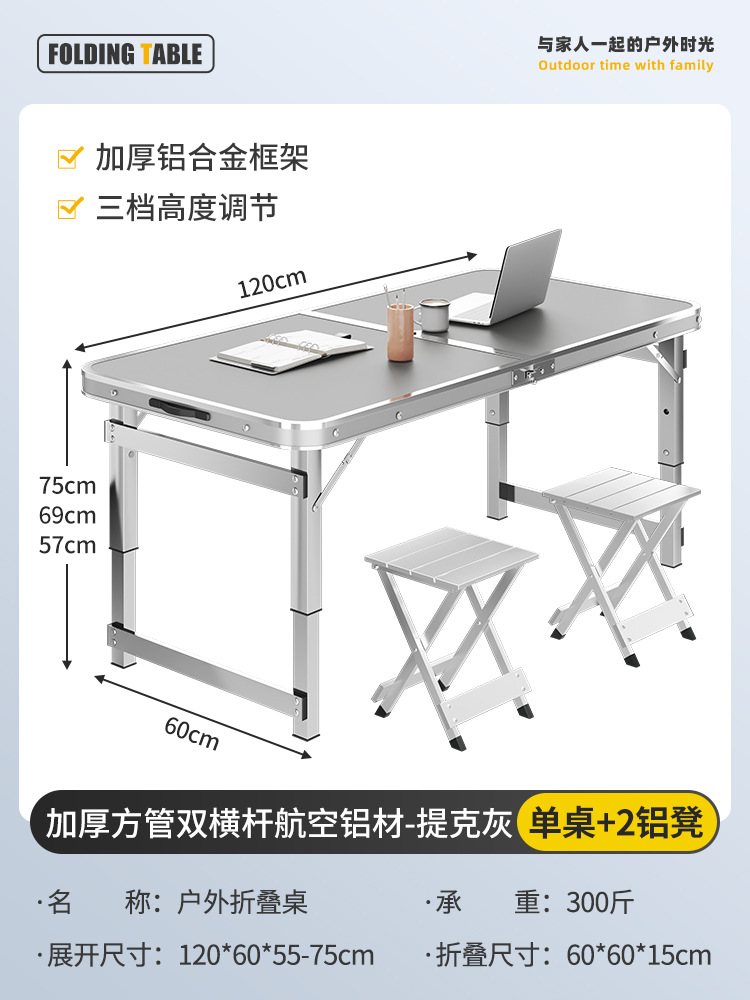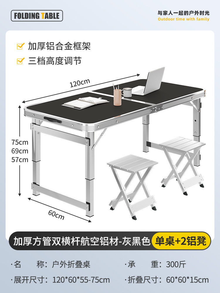 • [두꺼운 사각 튜브 이중 크로스바 항공 알루미늄] 120cm 회색 검정색 + 알루미늄 스툴 2개 설치 불필요