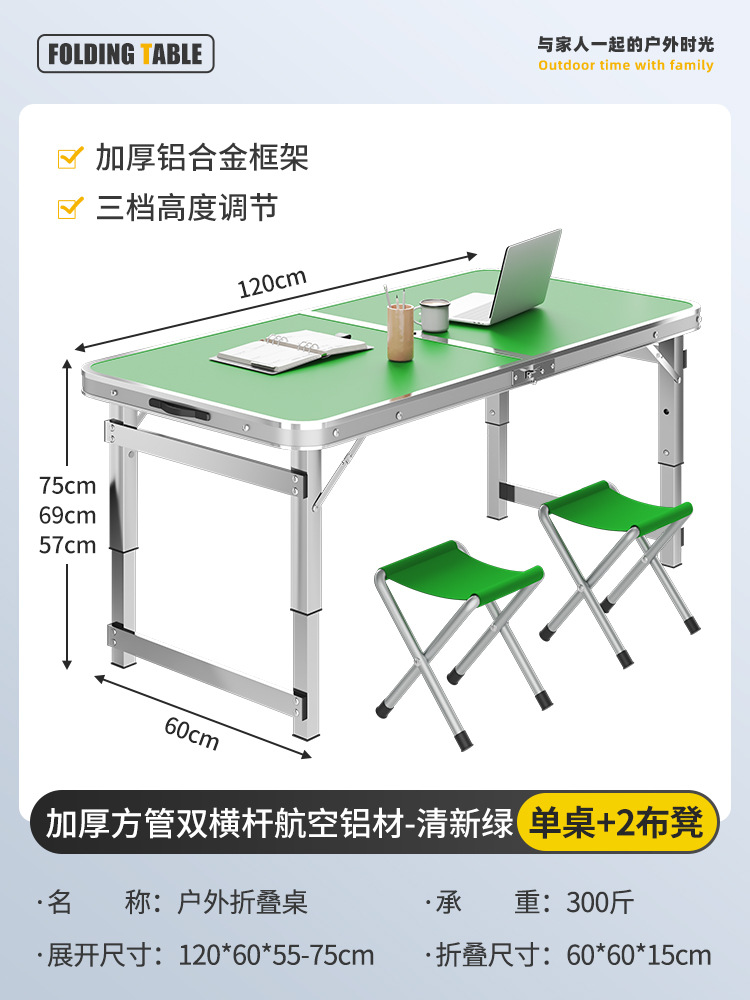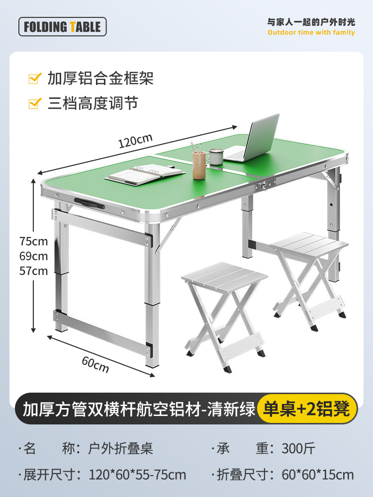 • [두꺼운 사각 튜브 이중 크로스바 항공 알루미늄] 120cm 신록 + 알루미늄 스툴 2개 설치 불필요