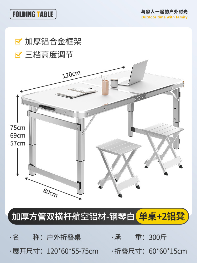 • [두꺼운 사각 튜브 이중 크로스바 항공 알루미늄] 120cm 피아노 화이트 + 알루미늄 스툴 2개 설치 불필요