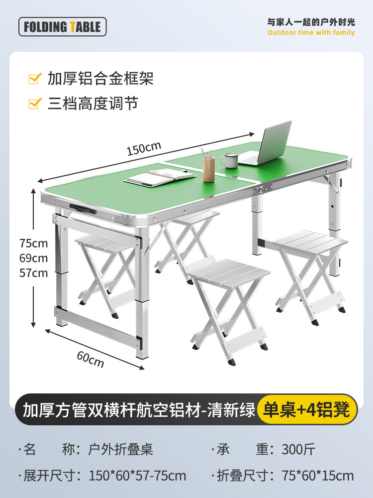 • [두꺼운 사각 튜브 이중 크로스바 항공 알루미늄] 150cm 신록 + 알루미늄 스툴 4개 설치 불필요