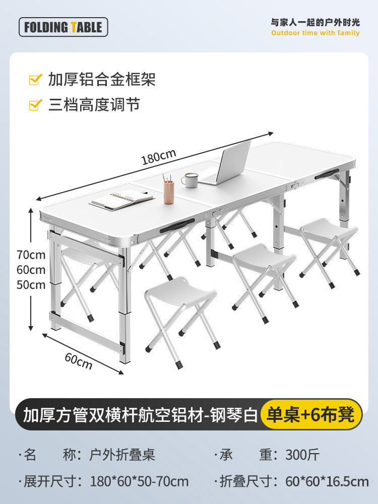 • [두꺼운 사각 튜브 이중 크로스바 항공 알루미늄] 180cm 피아노 화이트 + 천 스툴 6개 설치 불필요